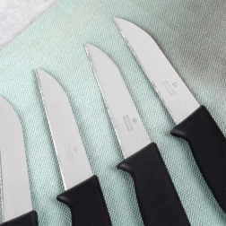 Svaki nož ima ukupnu duljinu 16 cm i duljinu oštrice 7 cm, što je idealna kombinacija za guljenje, čišćenje i dekorativno rezanje voća i povrća. Noževi su univerzalni – mogu poslužiti i za porcioniranje manjih komada mesa ili namirnica s tvrđom korom. Nakon upotrebe možete ih jednostavno staviti u perilicu posuđa.