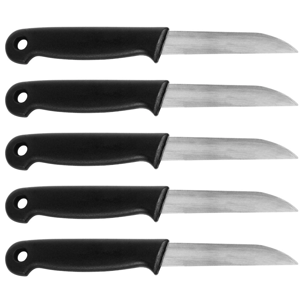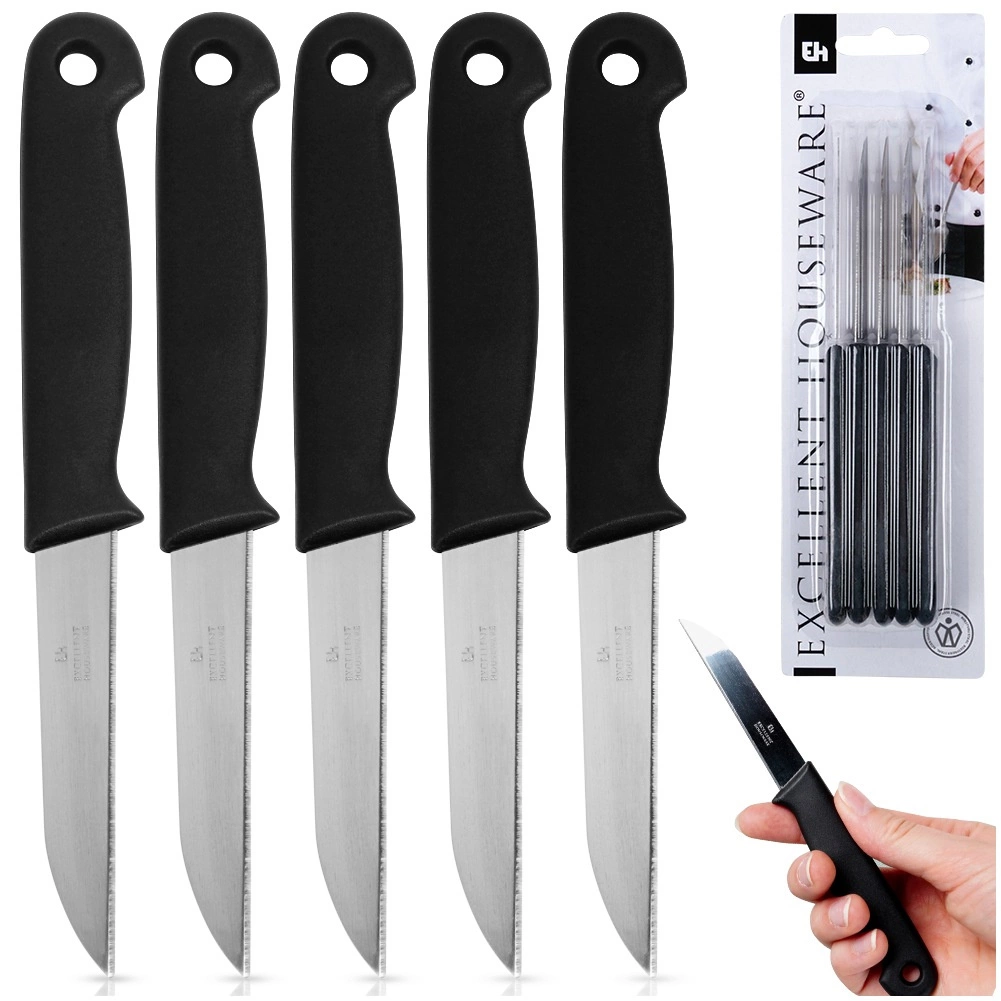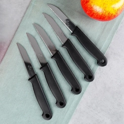 Set od 5 noževa za guljenje dizajniran je za precizno i udobno rezanje manjih namirnica. Nehrđajući čelik osigurava dug vijek trajanja i pouzdanu oštrinu, dok protuklizna ergonomska drška pruža siguran hvat i pri brzom ritmu rada.