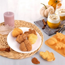 Stvarajte dojmljive sezonske poslastice s jesenskim silikonskim kalupom. Šest dubokih udubljenja s detaljima listova i žireva dočarat će efektne kekse ili mini tortice za dječje proslave i svakodnevno guštanje. Elastični i neljepljivi silikon olakšava punjenje i vađenje, ne upija mirise i ne deformira se.