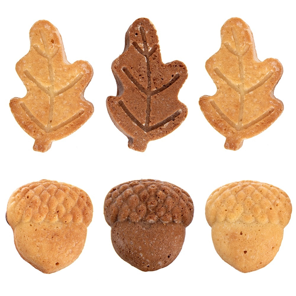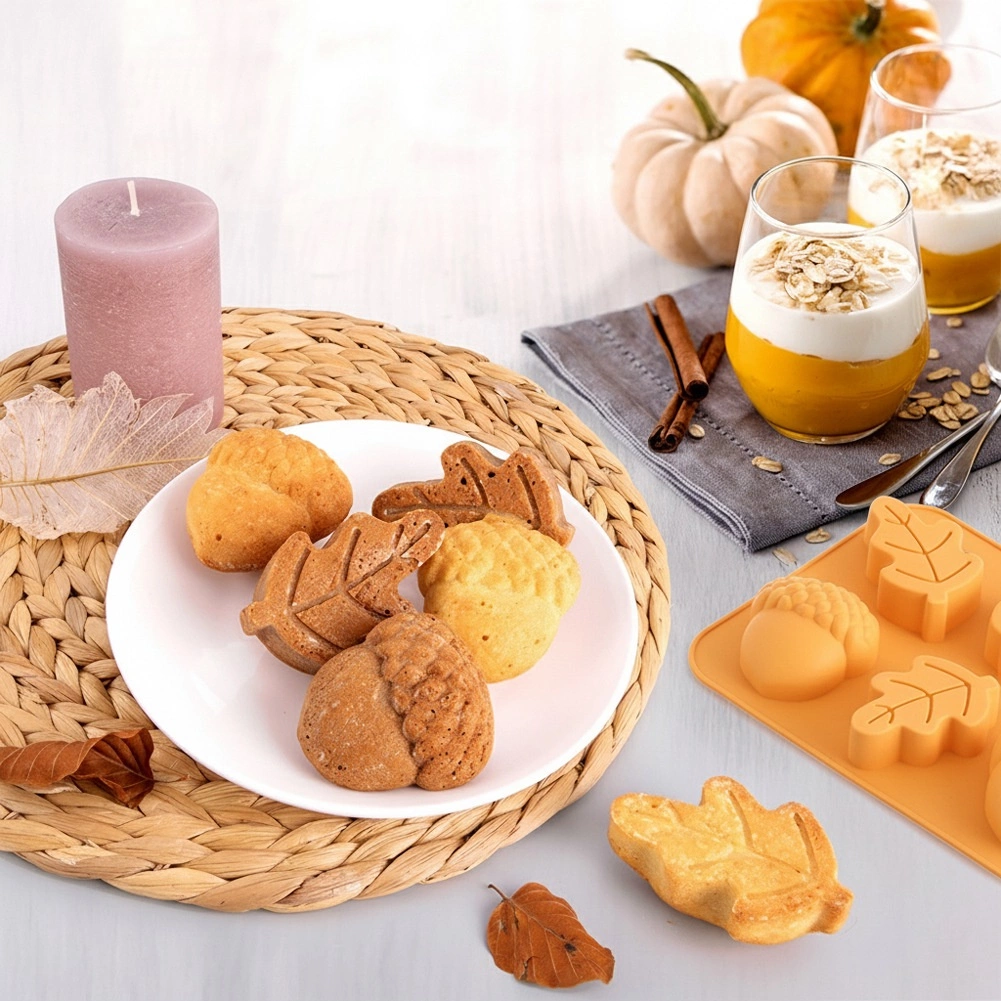 Šest kalupa u obliku listova i žireva stvara dekorativne mini deserte s oštrim konturama i glatkom površinom koji privlače pažnju na prvi pogled.