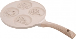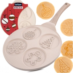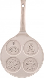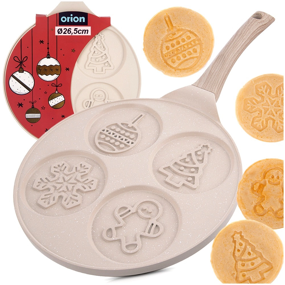 Uživajte u jednostavnom i brzom kuhanju s tavom promjera 26 cm i četiri kalupa (Ø 10 cm) koji oblikuju savršeno okrugle porcije s reljefom blagdanskih motiva. Neprianjajuća granitna površina osigurava ravnomjerno pečenje bez zagaranja i s minimalno ulja.