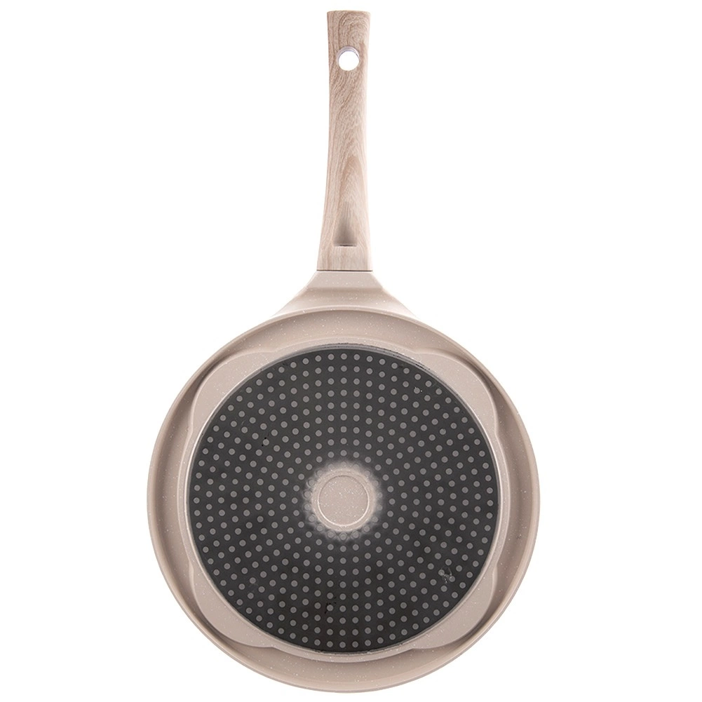 Masivno aluminijsko tijelo izvrsno provodi toplinu za brzo i učinkovito prženje, a toplina se ravnomjerno raspoređuje po cijeloj površini. Ergonomska drška je udobna, protuklizna i s otvorom za praktično vješanje. Tava je kompatibilna sa svim vrstama štednjaka, uključujući indukciju, i lako se čisti – prikladna je za perilicu posuđa.