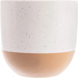 Stilizirana šalica od kvalitetne keramike u bezvremenskom dvobojnom izvedenju oduševljava čistim izgledom i visokom praktičnošću. Zapremnina od 290 ml idealna je za svakodnevno ispijanje omiljenih toplih napitaka. Nježna točkastá površina i donji kameni/terakota dio daju šalici prirodan, moderan karakter.