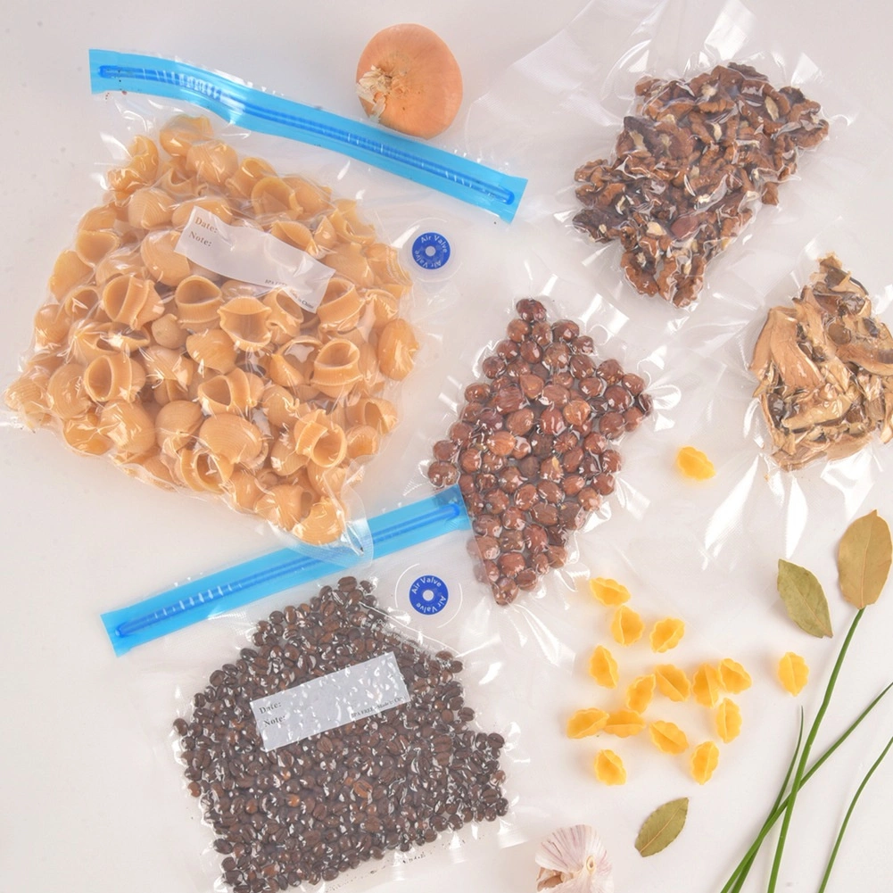 Očuvajte svoje namirnice dulje svježima i savršeno organiziranima. Višekratne vakuumske vrećice 26 × 28 cm s dvostrukim patentnim zatvaračem i ventilom za izvlačenje zraka štite od zraka, vlage i mirisa. Pogodne su za hladnjak i zamrzivač, a zahvaljujući izdržljivoj najlonskoj foliji bez BPA podnose temperature od −20 °C do +110 °C.