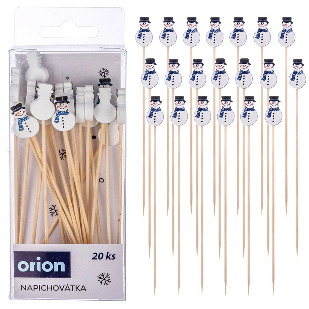 Prirodne bambusove štapiće i drvene ukrase sigurno je koristiti u kontaktu s hranom. Snjegović toppers daju stolu veseo i efektan izgled – idealno za kućne zabave, roštiljanja i obiteljske proslave.