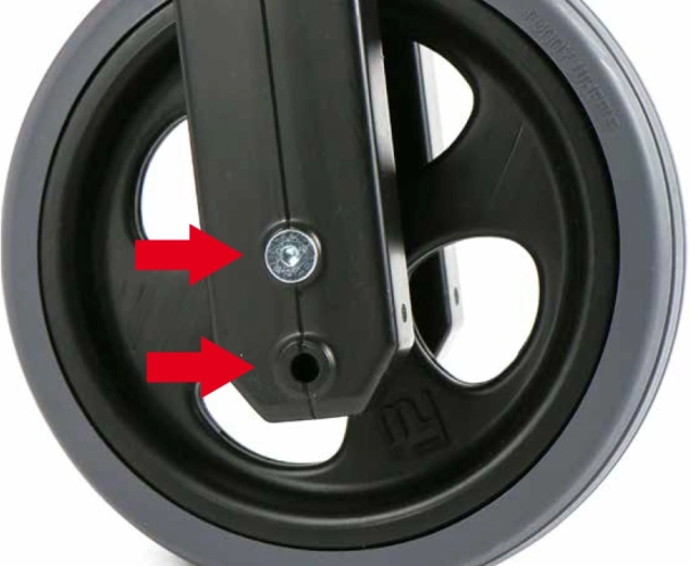 Kvalitetni pneumatici s tihim radom ne kližu, ergonomska upravljačka s proširenim završecima štiti ruke, a ograničen kut okretanja vilice povećava sigurnost. Izdržljiva, zdravstveno ispravna plastika s glatkim spojevima lako se održava – dovoljna je mlaka voda i sapunasti čistač.
