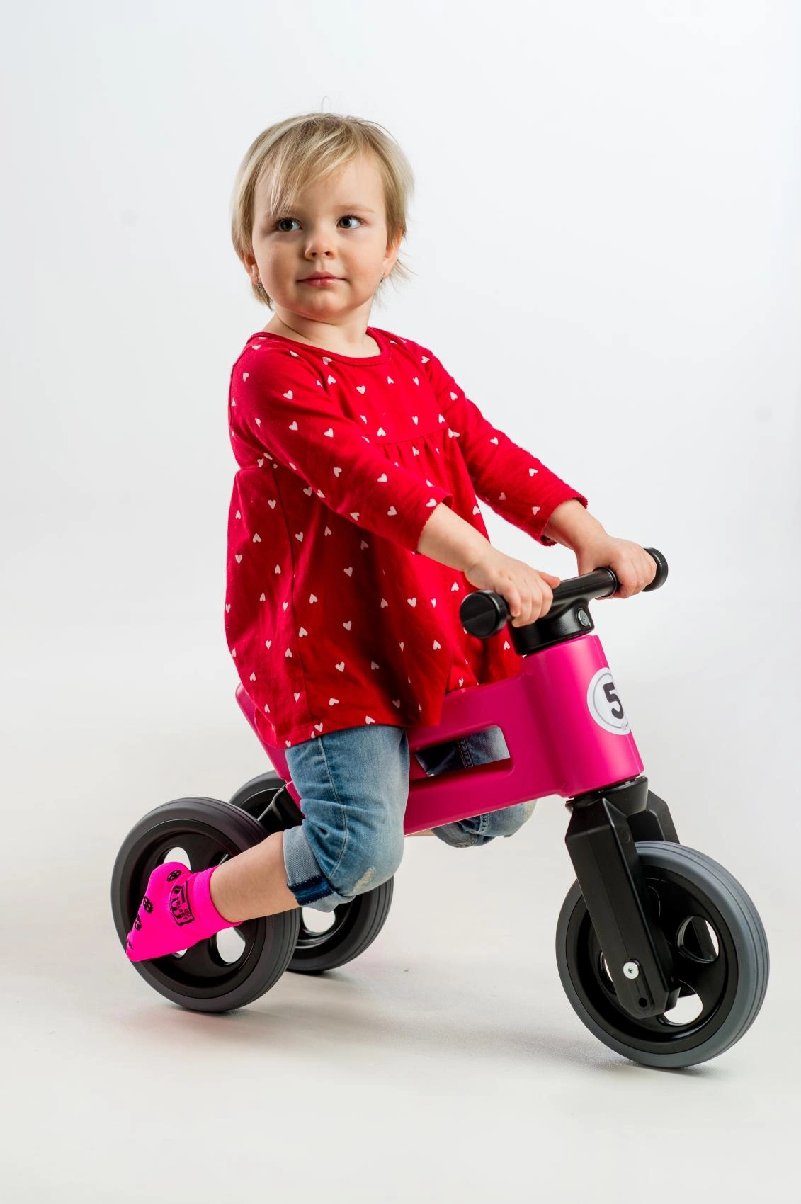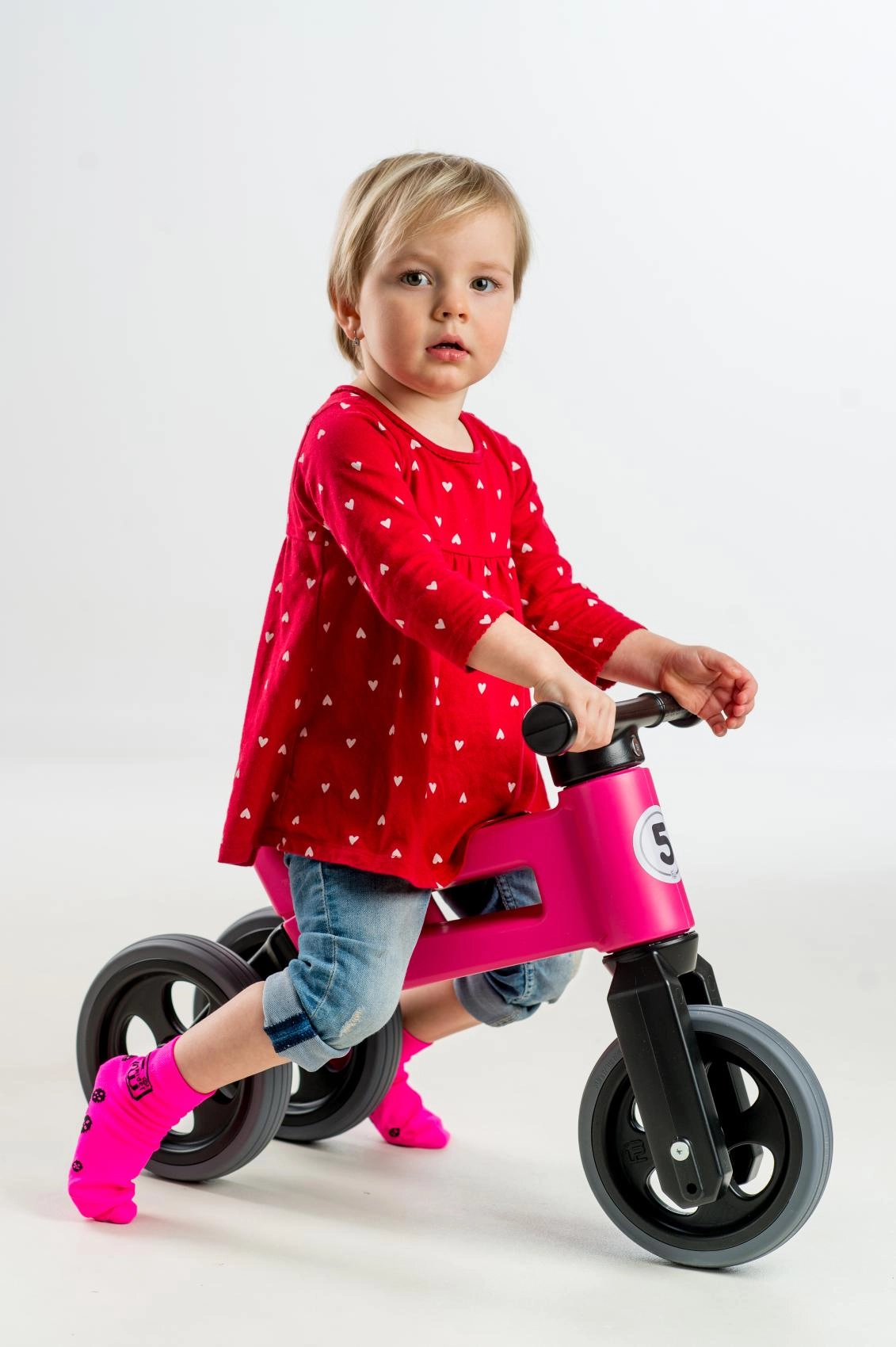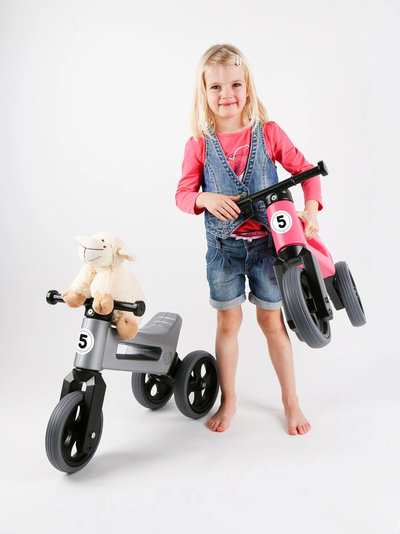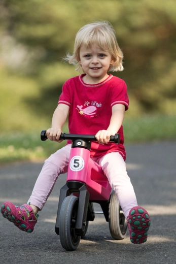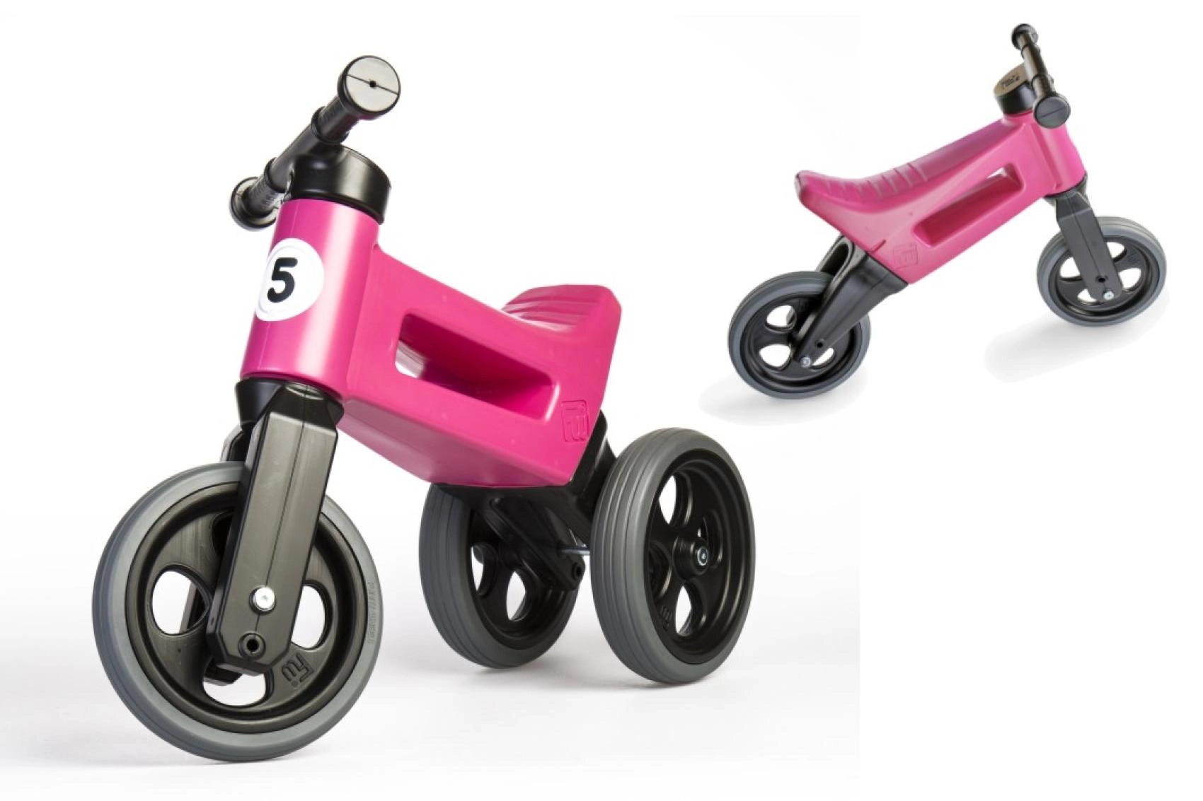 Započnite sa stabilnim triciklom, a kad dođe vrijeme za vježbanje ravnoteže, jednostavno zamijenite dva stražnja kotača jednim. Idealno za gladak prijelaz na prvi bicikl.