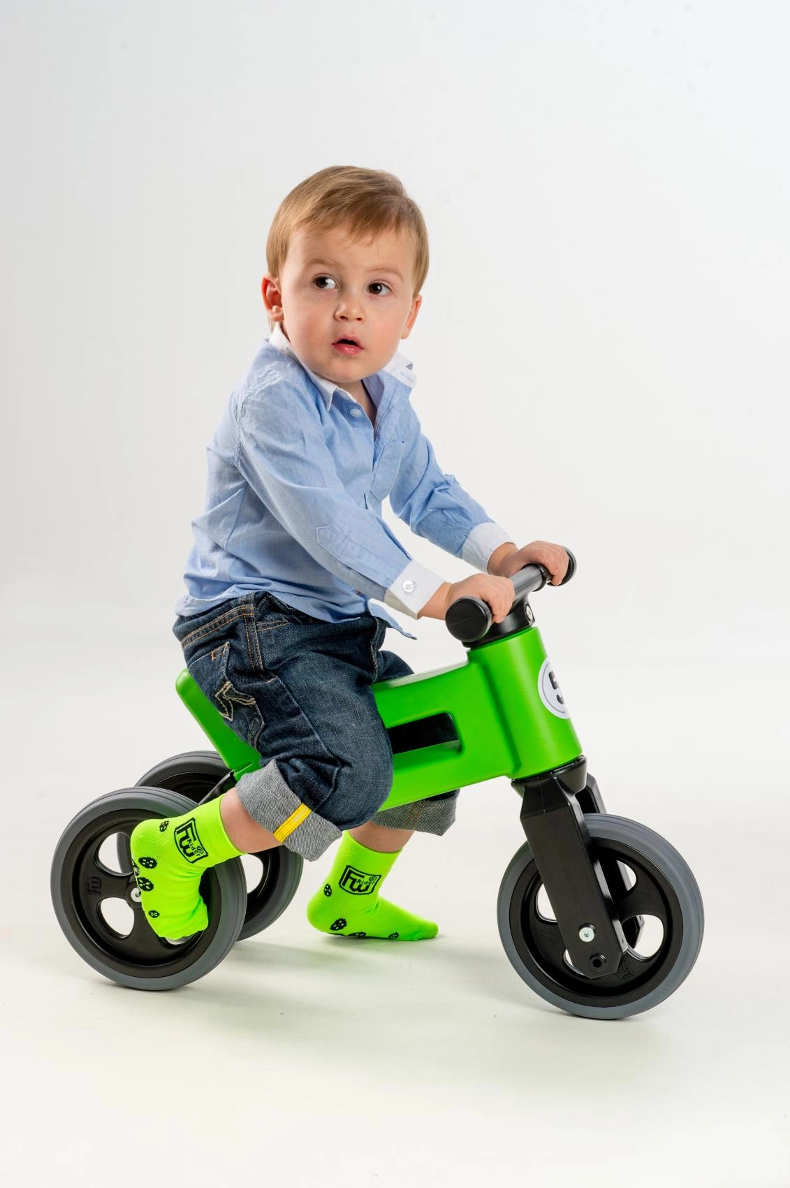 Počnite sa stabilnim trokotačem, a kasnije pređite na dvokotačno guralo za vježbanje ravnoteže. Sve potrebno je u pakiranju.