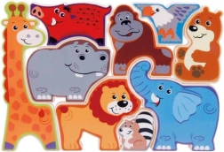 Uz ovu drvenu slagalicu Safari, djeca otkrivaju čar divljine iz udobnosti doma. Slagalica sadrži devet prekrasno šarolikih životinja, uključujući lava, žirafu i slona, svaka napravljena da precizno pristaje u svoje utore na ploči. Igračka je dizajnirana za male dječje ruke, podržava finu motoriku i zabavan je način učenja.