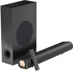 Raznolika povezivost olakšava integraciju u sustav: putem HDMI ARC zvuk s TV-a prenosi se glatko, USB pokriva reprodukciju s PC-a, a Bluetooth brzo uparuje mobitel ili tablet. U kompletu je i daljinski upravljač za praktično upravljanje glasnoćom i načinima rada.