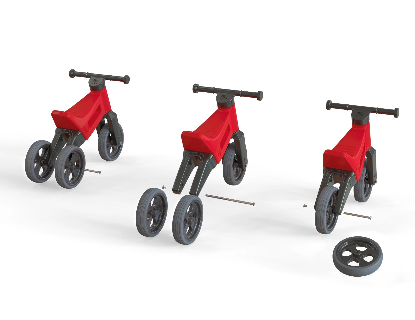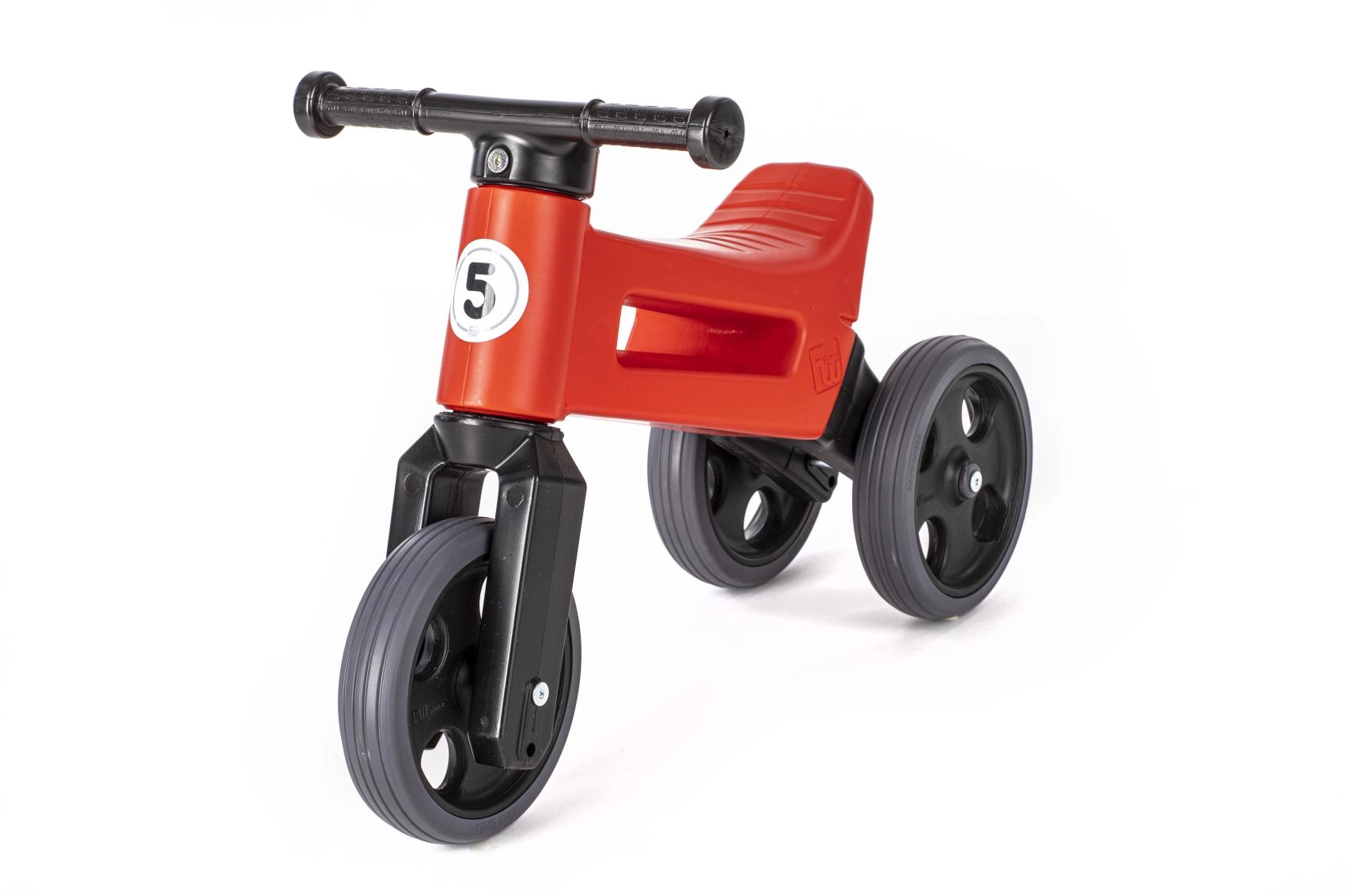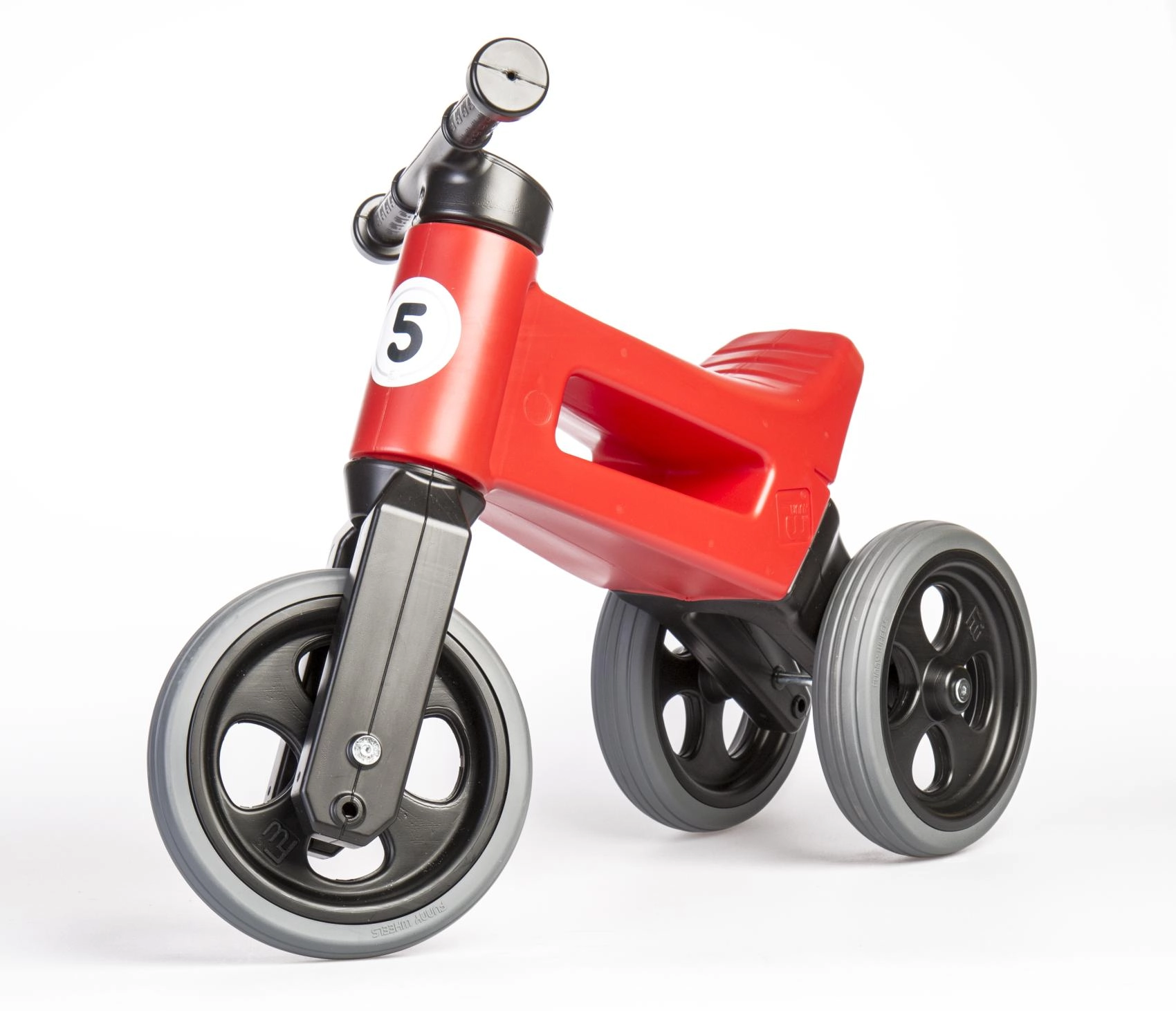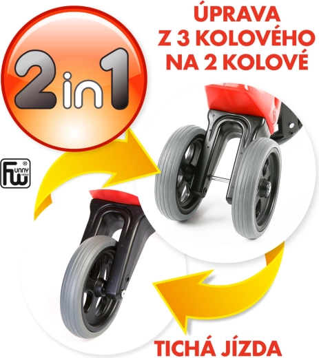 Originalna češka guralica FUNNY WHEELS Rider Sport osmišljena je kako bi djeci olakšala prve korake prema vožnji bicikla. Zahvaljujući sustavu 2u1, u par minuta je mijenjate iz trokotačne u dvokotačnu, a s dvije visinske pozicije sjedala (razlika 3 cm) prati dijete kroz različite faze rasta.