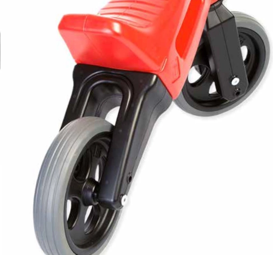 Guralica ima tihe pneumatici koji ne kližu, glatku i sigurnu izradu od izdržljive, neškodljive plastike te ograničen kut zakreta vilice, pa se upravljač ne može preokrenuti. Djeca prirodno vježbaju ravnotežu, koordinaciju i motoriku i uživaju u puno zabave kod kuće i na otvorenom.