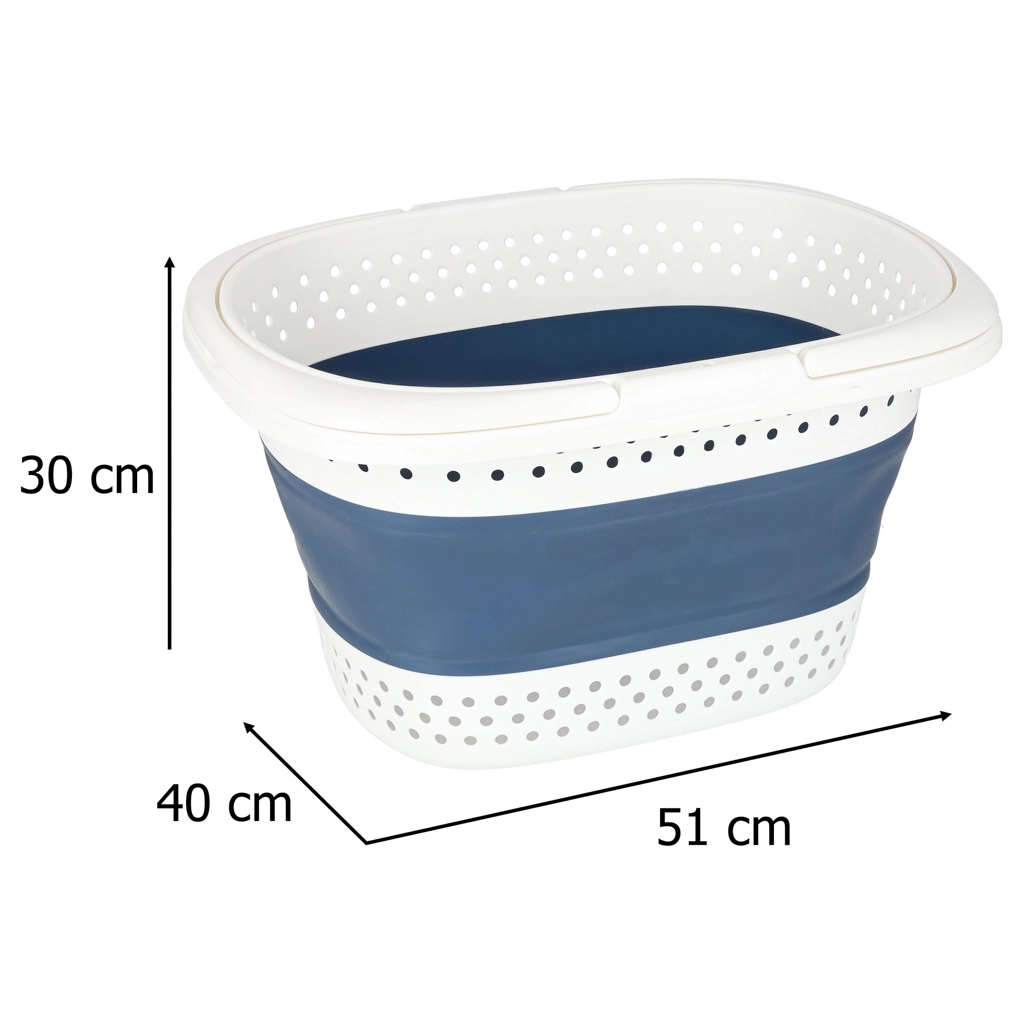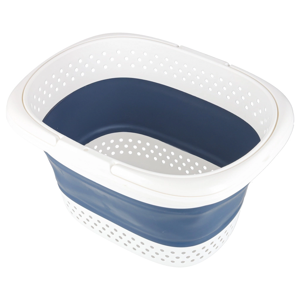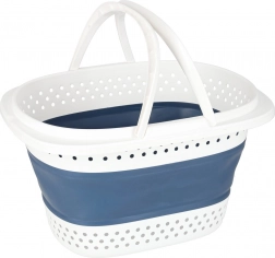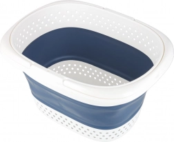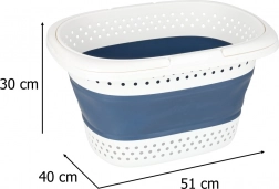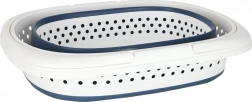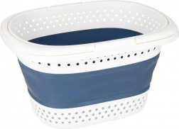 Ova velika, ali nakon sklapanja kompaktna košara za rublje donosi pametno rješenje za svakodnevno razvrstavanje i prenošenje rublja. Fleksibilni središnji dio od izdržljivog silikona omogućuje brzo sklapanje u ravan oblik, dok čvrsti rub i dno drže formu pri uporabi. Zahvaljujući perforiranim stranicama zrak cirkulira i rublje ne ustajava.
