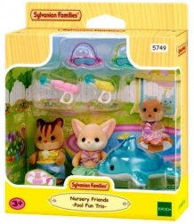 Paket uključuje tematske dodatke za vodene igre koji potiču dječju maštu: napuhani dupin, ronilačke naočale i vodeni pištolj. Set se odlično može kombinirati s drugim proizvodima SYLVANIAN FAMILIES (npr. Šarena vrtić ili Šareni autobus) kako biste stvorili još razrađenije scene i priče.