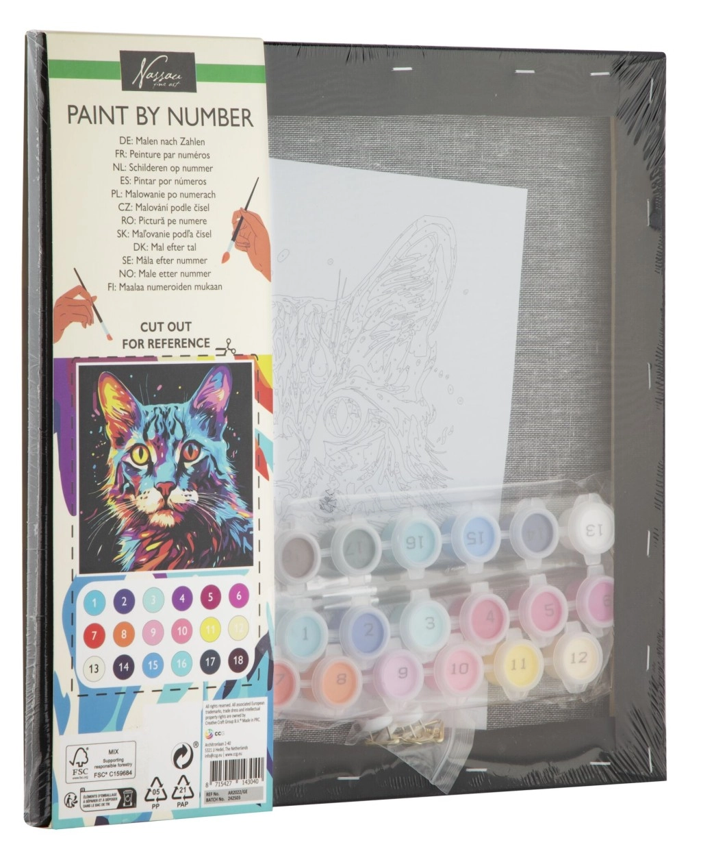 Ovaj set za slikanje po brojevima idealan je izbor za djecu i odrasle koji vole životinje i žele se opustiti uz kreativnu aktivnost. Crno platno daje motivu mačke izražajan kontrast i moderan izgled, zahvaljujući kojem gotova slika ističe svaki interijer.