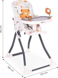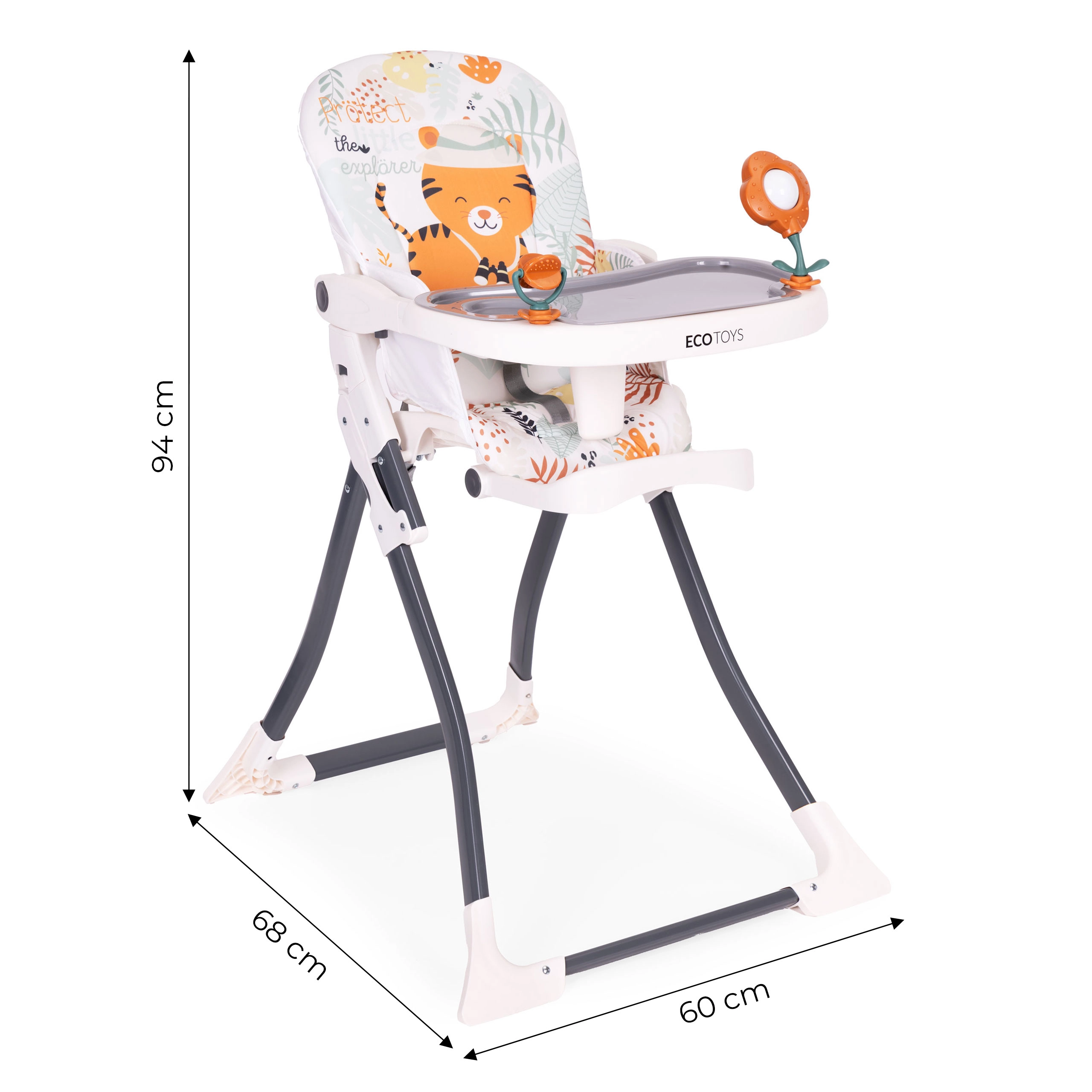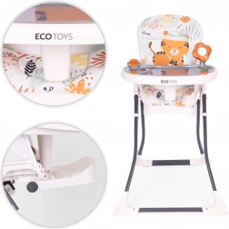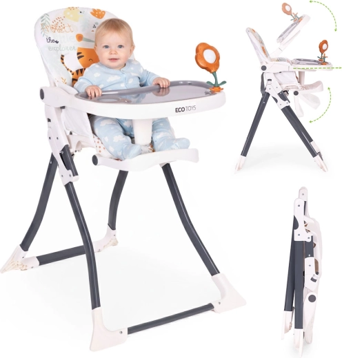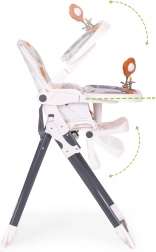 Hranilica ECOTOYS olakšava zajedničko blagovanje i prve pokušaje samostalnog jedenja. Široki pladanj nudi dovoljno mjesta za tanjurić i igru te senzornu stimulaciju zahvaljujući integriranim igračkama. Odvojiva presvlaka od elastana i dvostruki pladanj s gornjim uklonjivim slojem osiguravaju brzo čišćenje.