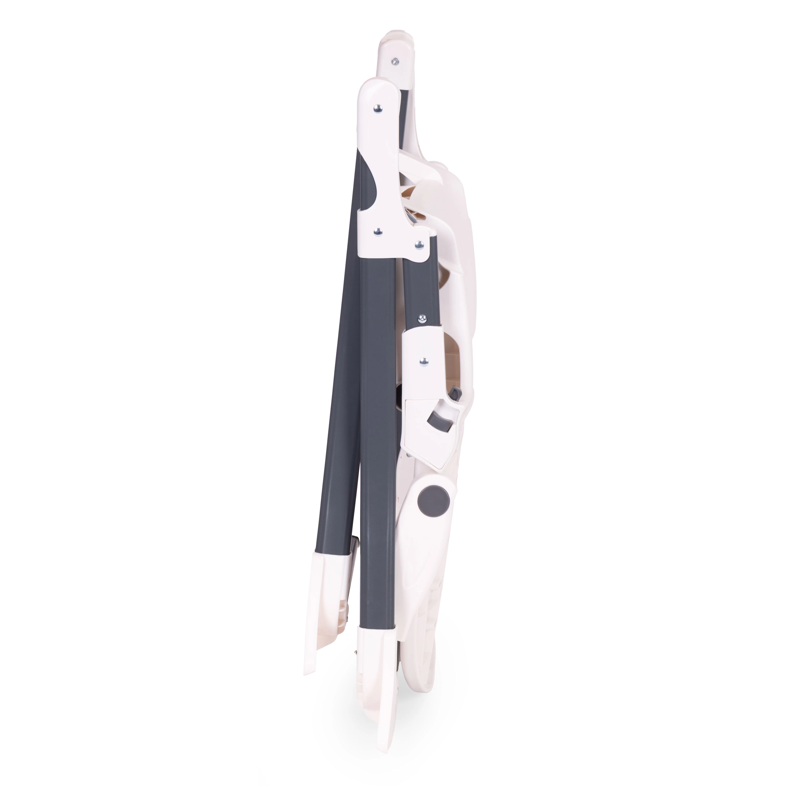 Stabilni čelični okvir, trodijelni pojasevi i graničnik između nogu drže dijete u sigurnom položaju. Podesivi pladanj i oslonac za noge prilagođavaju se rastu djeteta, pa pružaju udobnost od 6 do 36 mjeseci. Sklopiva konstrukcija štedi prostor kod kuće i olakšava transport.