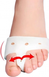 Praktično silikonsko pomagalo za udobnost pri hodu i svakodnevnom nošenju obuće. Razdjelnica nježno povećava razmak između palca i drugog prsta, čime pomaže pravilnom položaju prstiju i smanjuje pritisak na zglob palca. Meki, elastični silikon prilagođava se obliku stopala i pruža trenutačno olakšanje od trenja i žuljeva.