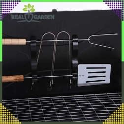 Zahvaljujući ventilacijskim otvorima izgaranje ugljena je učinkovitije, pa ćete jela pripremiti brže i ravnomjernije. Sa strane se nalaze praktične ručke za lako prenošenje. U pakiranju dodatno dobivate osnovnu opremu – lopaticu, kliješta i ražnjić, kako biste mogli početi roštiljati odmah.