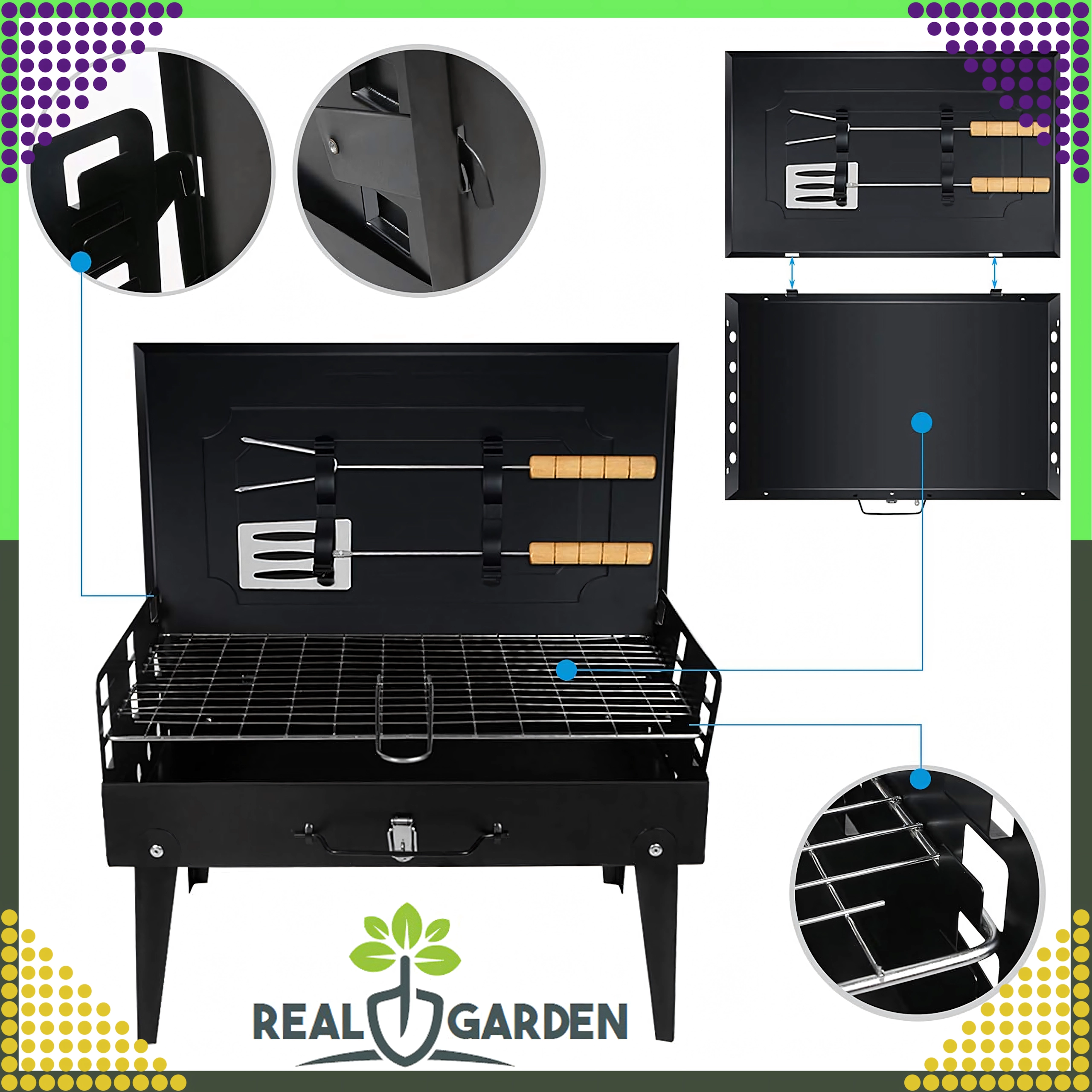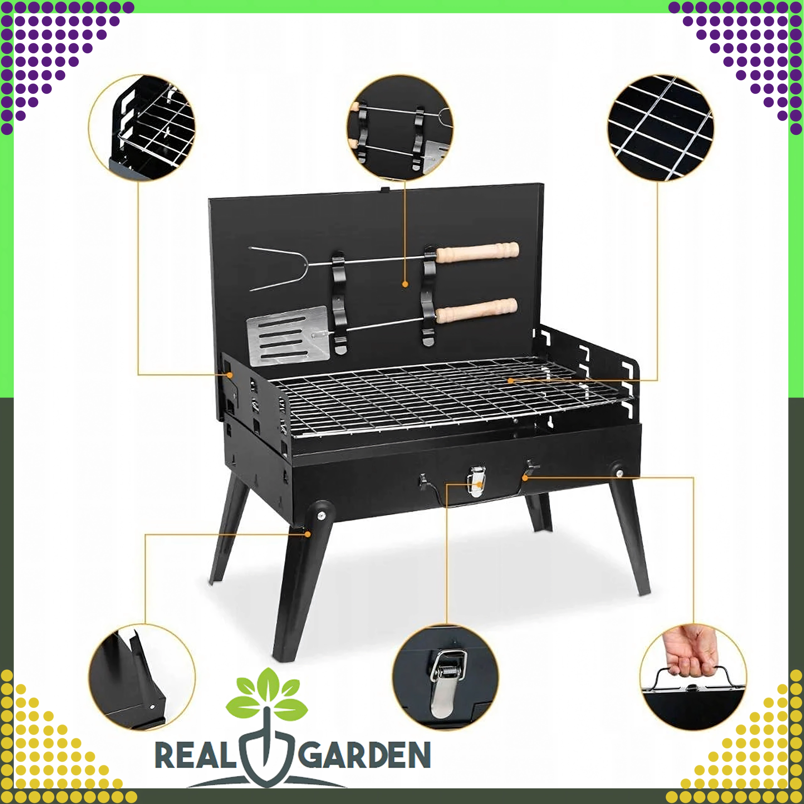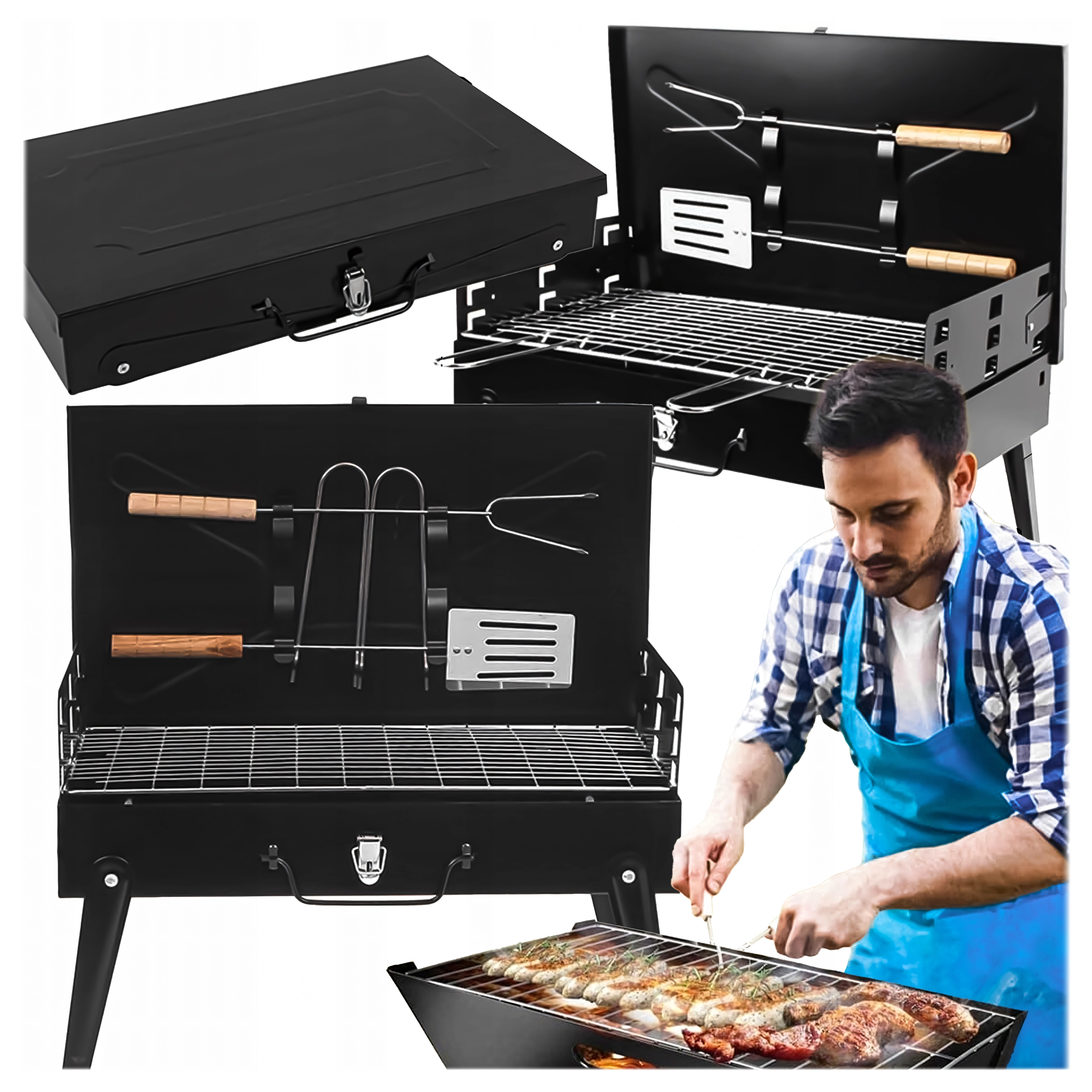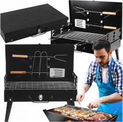 Uživajte u roštiljanju gdje god poželite s ovim sklopivim i prijenosnim roštiljem na ugljen u praktičnom kofer-dizajnu. Brza montaža bez alata, stabilna konstrukcija i kompaktne dimenzije 44 × 27 × 47 cm čine ga idealnim izborom za kampiranje, vrt i piknik. U kompletu se nalazi i rešetka te osnovni pribor za roštilj (lopatica, kliješta, ražnjić). Ventilacijski otvori osiguravaju učinkovitije izgaranje i bržu pripremu hrane.