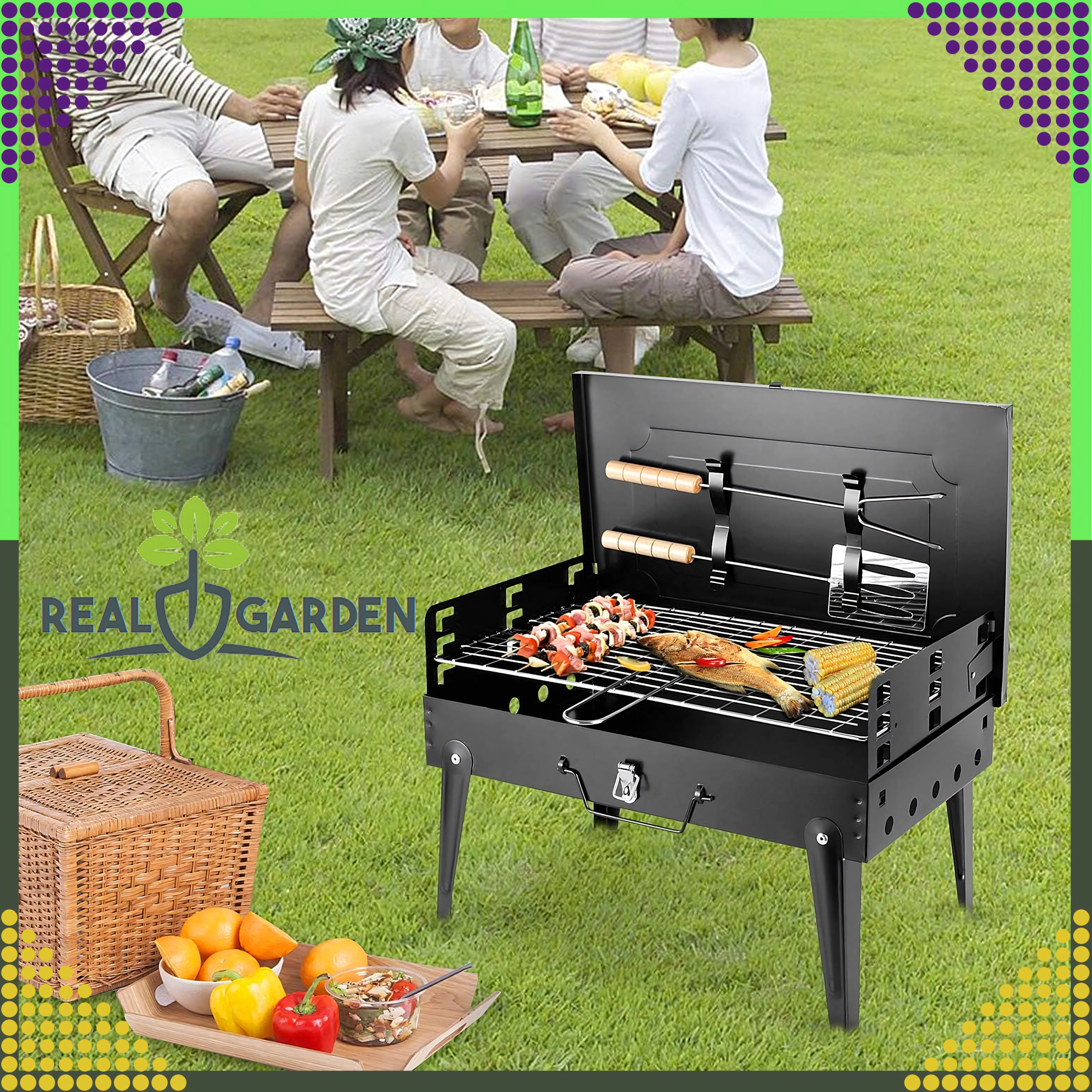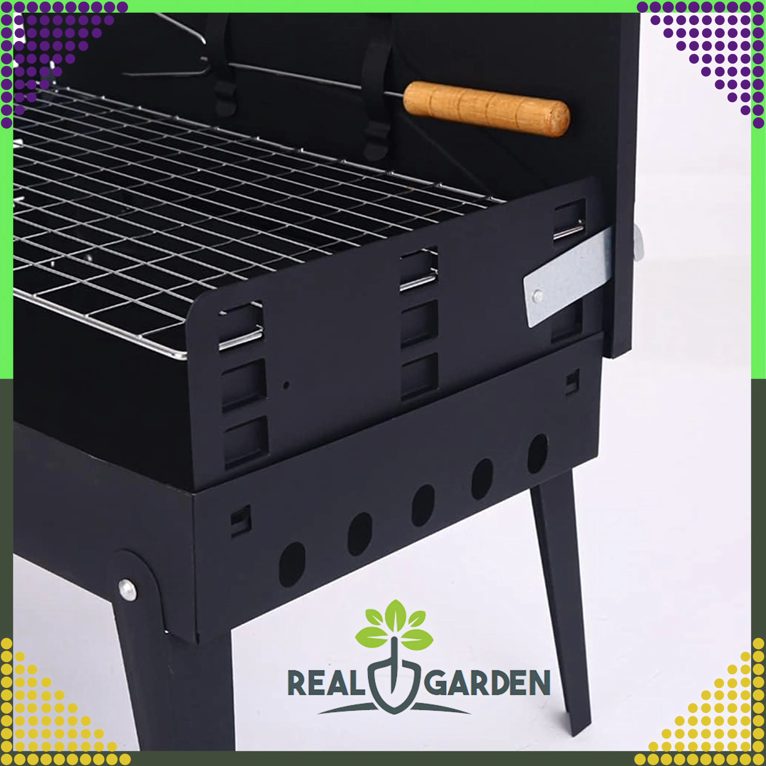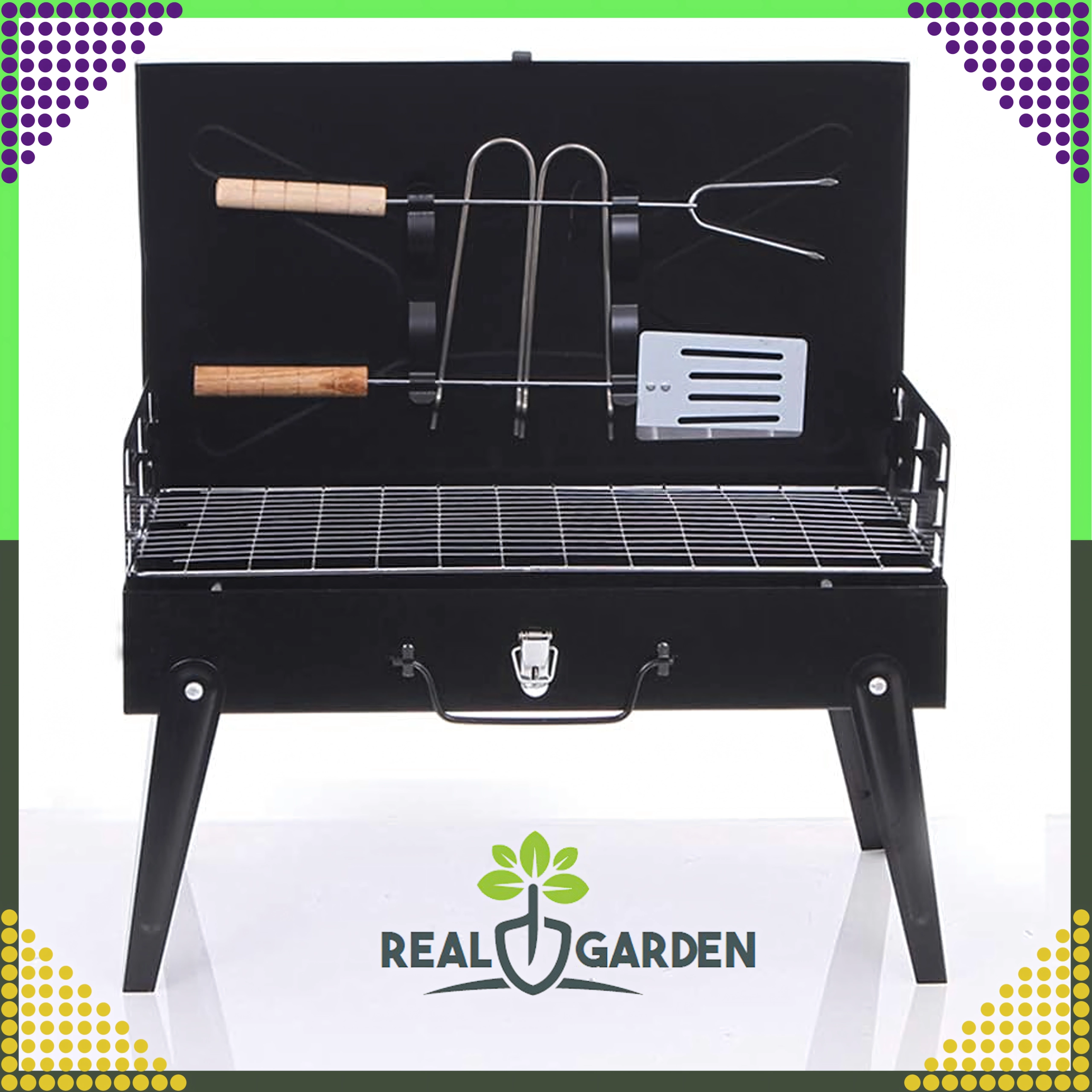 Uživajte u roštiljanju gdje god poželite s ovim sklopivim i prijenosnim roštiljem na ugljen u praktičnom kofer-dizajnu. Brza montaža bez alata, stabilna konstrukcija i kompaktne dimenzije 44 × 27 × 47 cm čine ga idealnim izborom za kampiranje, vrt i piknik. U kompletu se nalazi i rešetka te osnovni pribor za roštilj (lopatica, kliješta, ražnjić). Ventilacijski otvori osiguravaju učinkovitije izgaranje i bržu pripremu hrane.