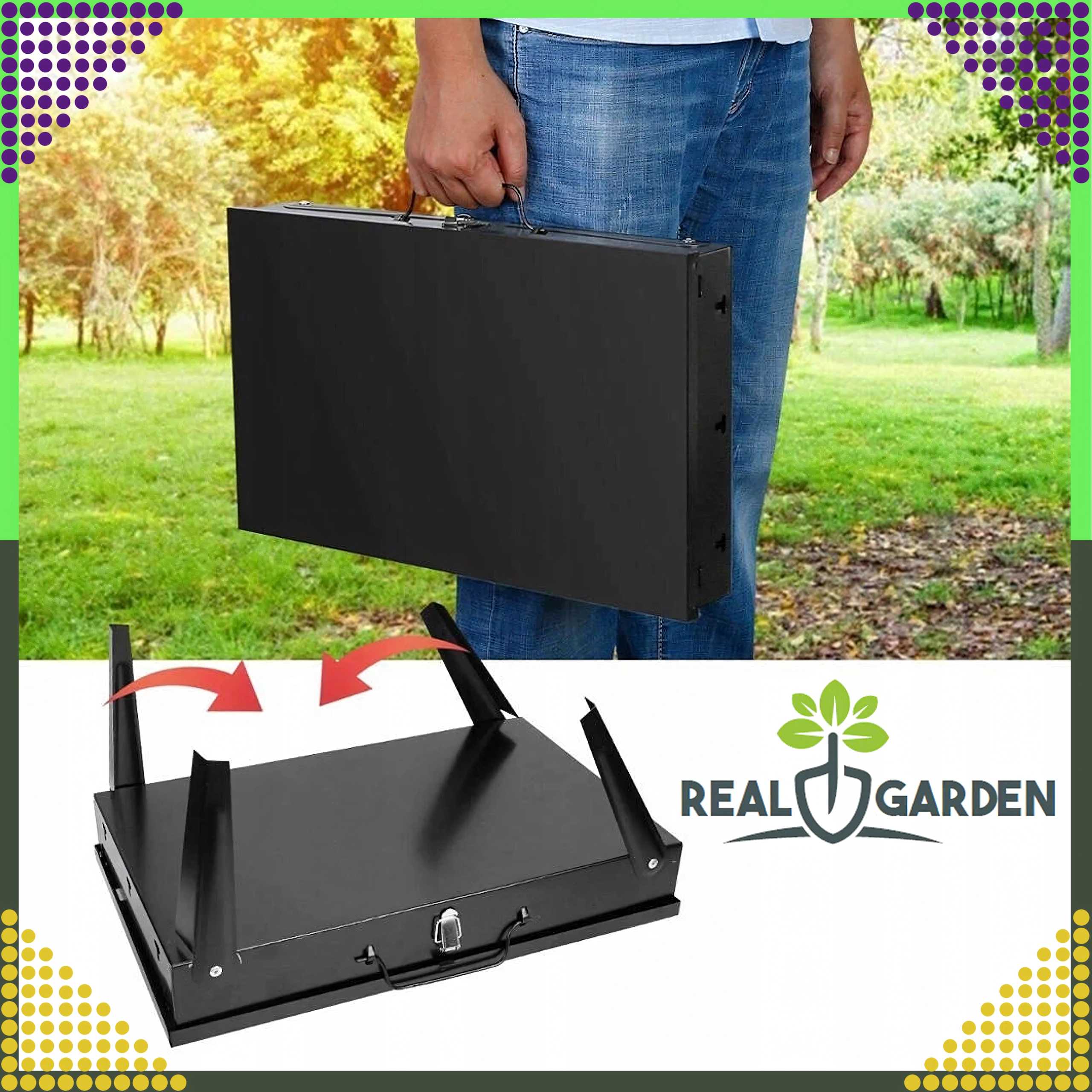 Lagan, kompaktan i pouzdan – ovaj roštilj na ugljen složit ćete u trenu, a nakon uporabe jednostavno zatvoriti u oblik kofera s ručkom. Metalno tijelo s crnom završnom obradom i povezane noge za veću stabilnost osiguravaju sigurno i ugodno roštiljanje kod kuće i na putu.