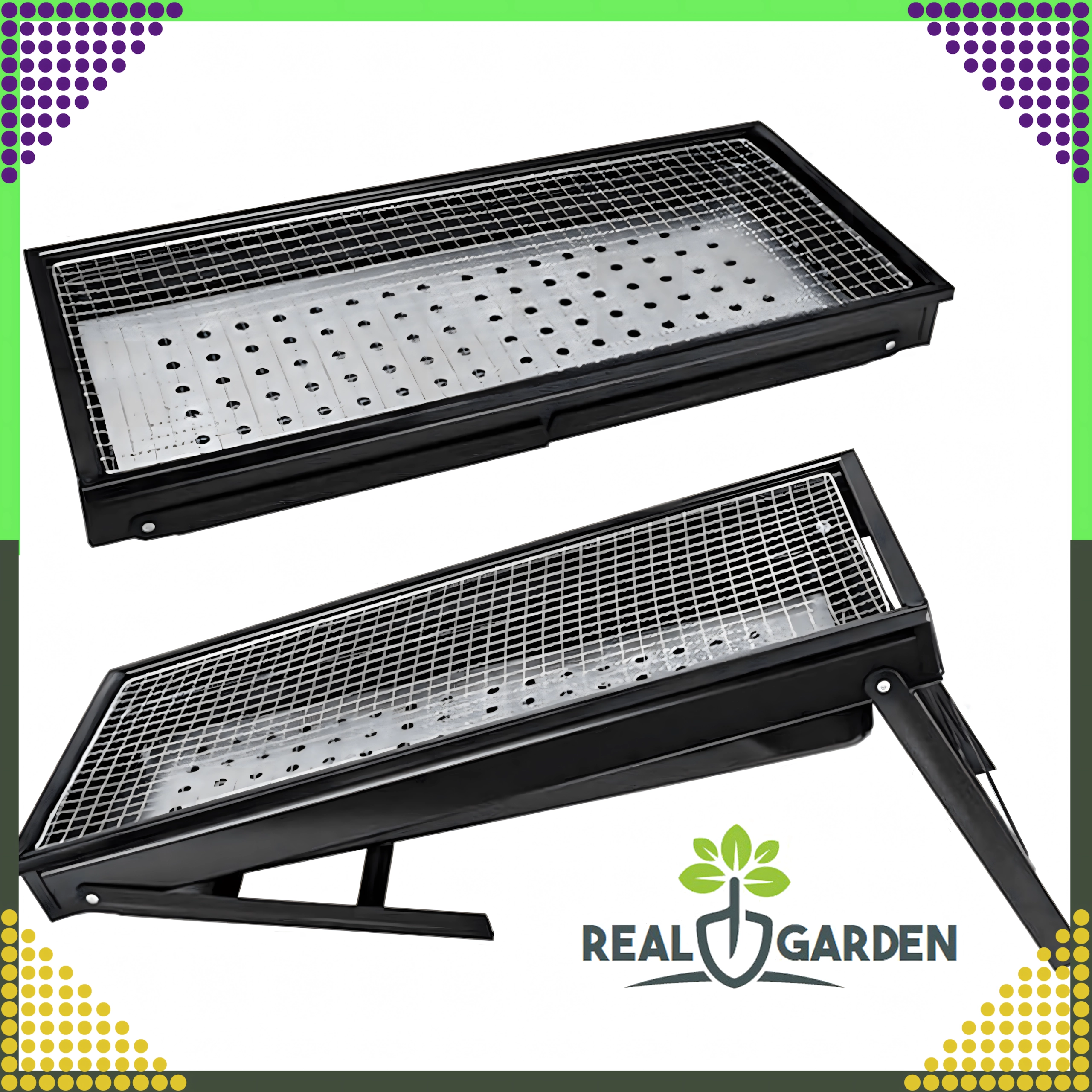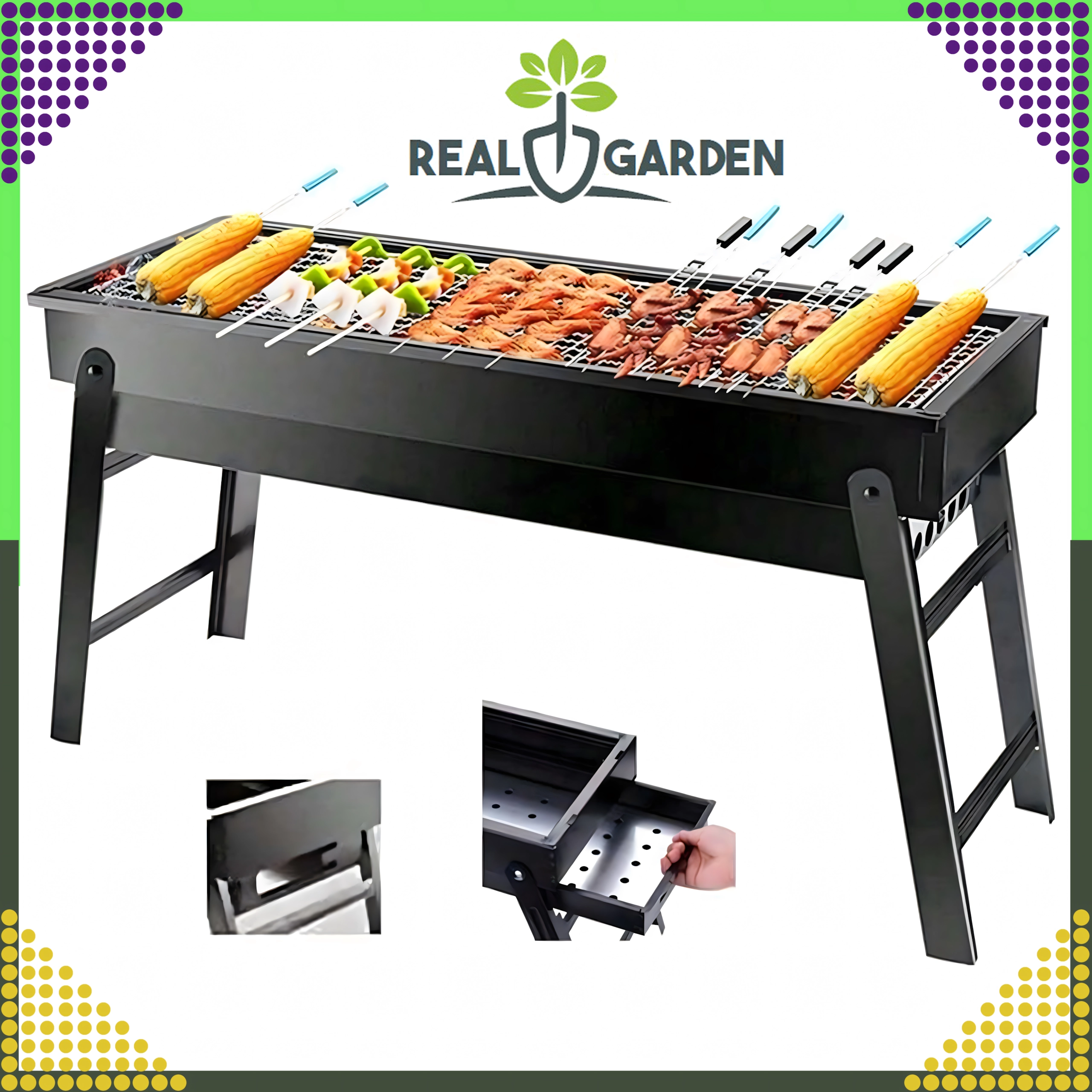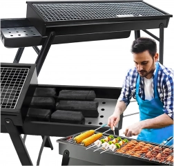 Ovaj prijenosni sklopivi roštilj od crno plastificiranog čelika dizajniran je za brzo i praktično roštiljanje u prirodi, vrtu ili na terasi. Zahvaljujući laganoj konstrukciji i sklopivim nogama, u nekoliko sekundi ga pripremite za rad, a nakon roštiljanja lako pospremite ili prevezete.