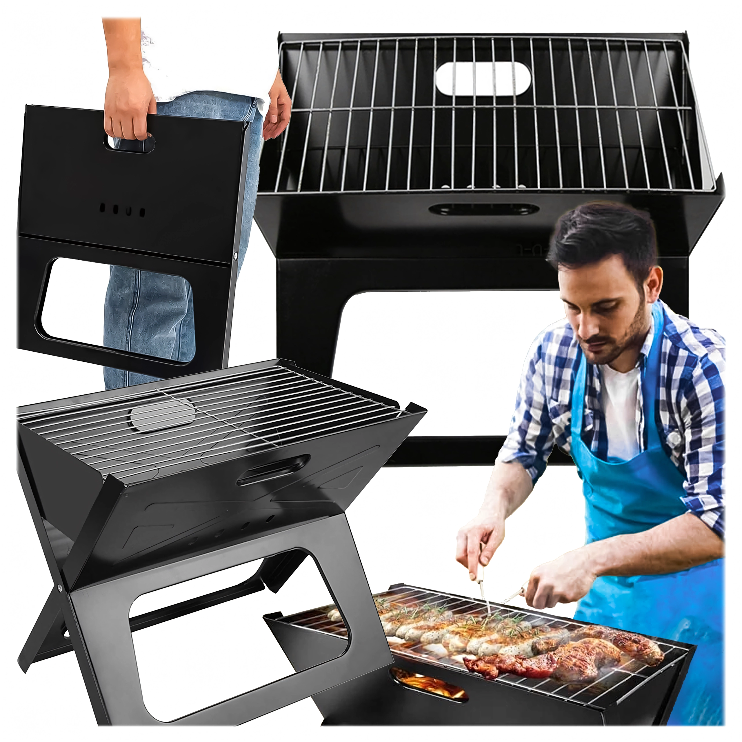 Ovaj prijenosni ugljeni roštilj izvrstan je suputnik za izlete u prirodu i za kućni vrt. Zahvaljujući pametnoj konstrukciji, nakon sklapanja pretvara se u kompaktan kofer, pa se lako prenosi i sprema. Dovoljno je rasklopiti, nasuti ugljen ili brikete i u trenu možete roštiljati.