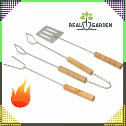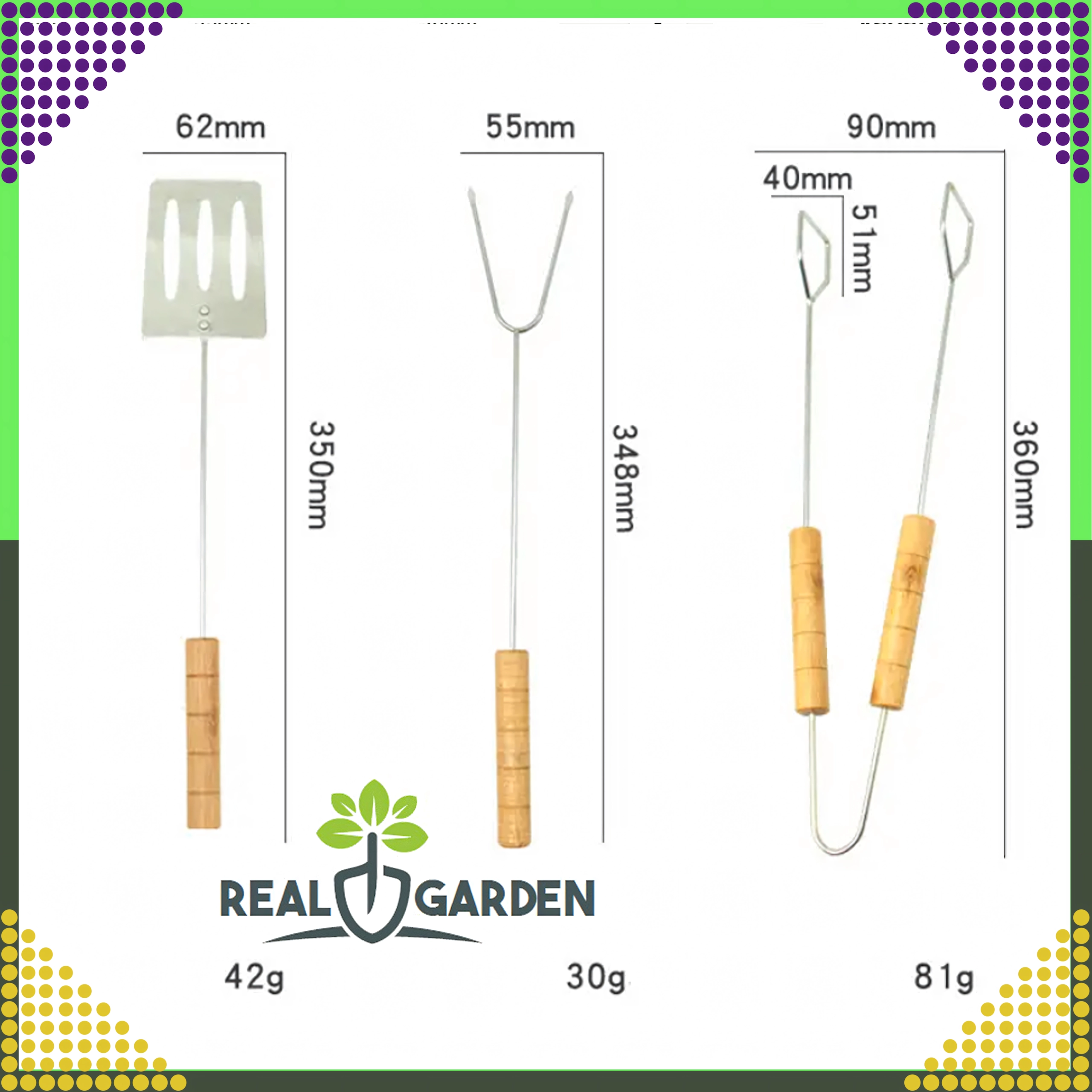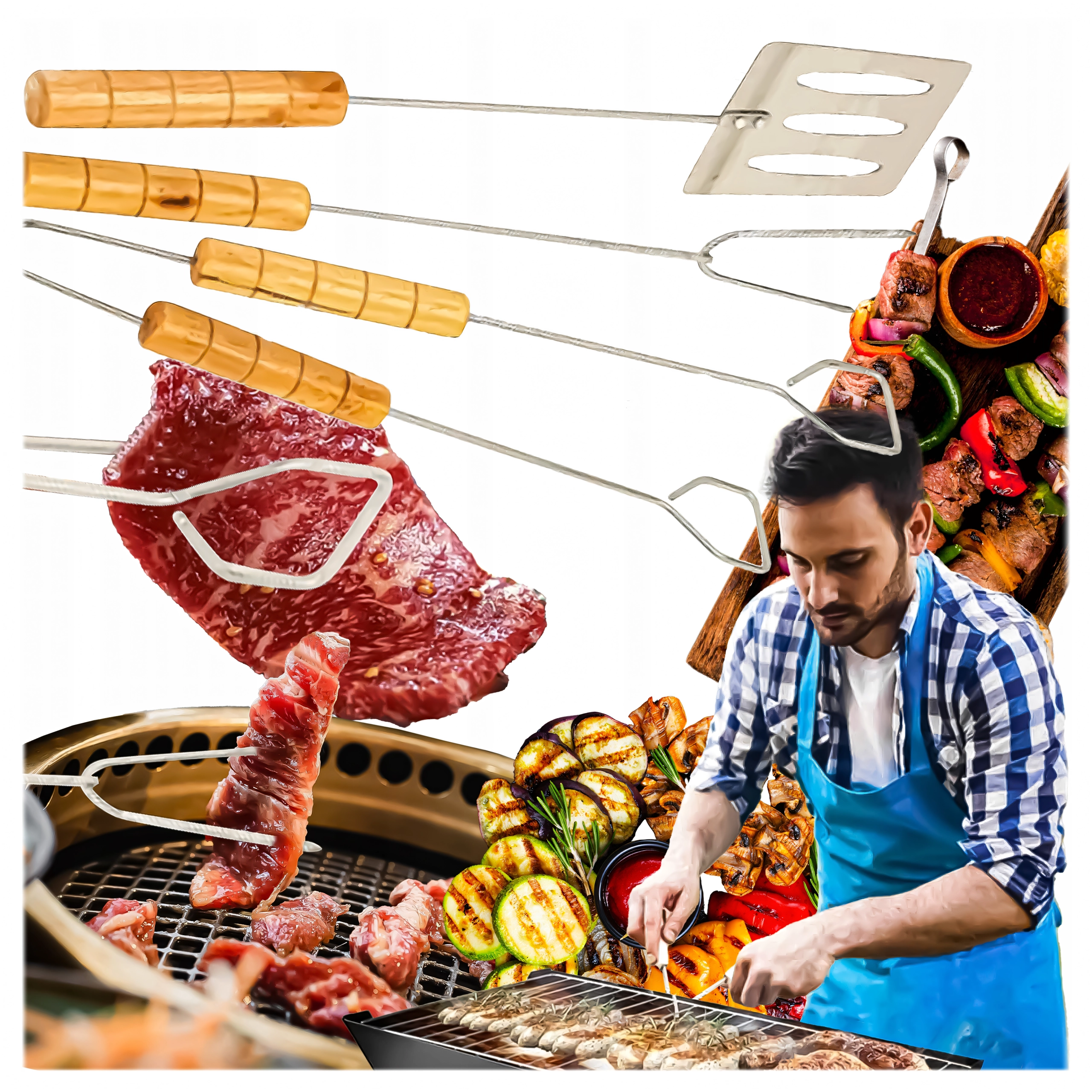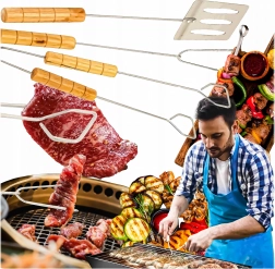 Ovaj univerzalni set idealan je za svakog ljubitelja roštiljanja. Kvalitetni nehrđajući čelik osigurava izdržljivost i jednostavno održavanje, dok drške od drveta ergonomskog oblika pružaju udobnost i pri duljoj upotrebi. Pripremite burgere, ražnjiće ili povrće kao profesionalac – lako i s potpunom kontrolom.