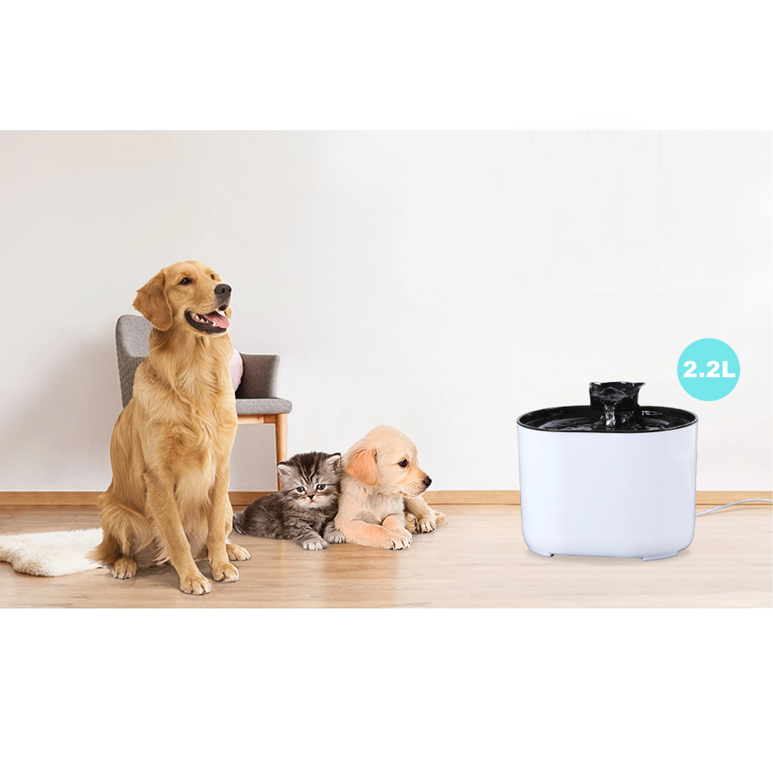 Ova moderna fontana za kućne ljubimce kombinira tihi rad, cirkulaciju vode i učinkovitu filtraciju kako bi voda za vašeg krznenog prijatelja uvijek bila svježa, čista i primamljiva za piće. Zapremnina od 2,2 l idealna je za mačke i male pse te smanjuje potrebu čestog nadopunjavanja.