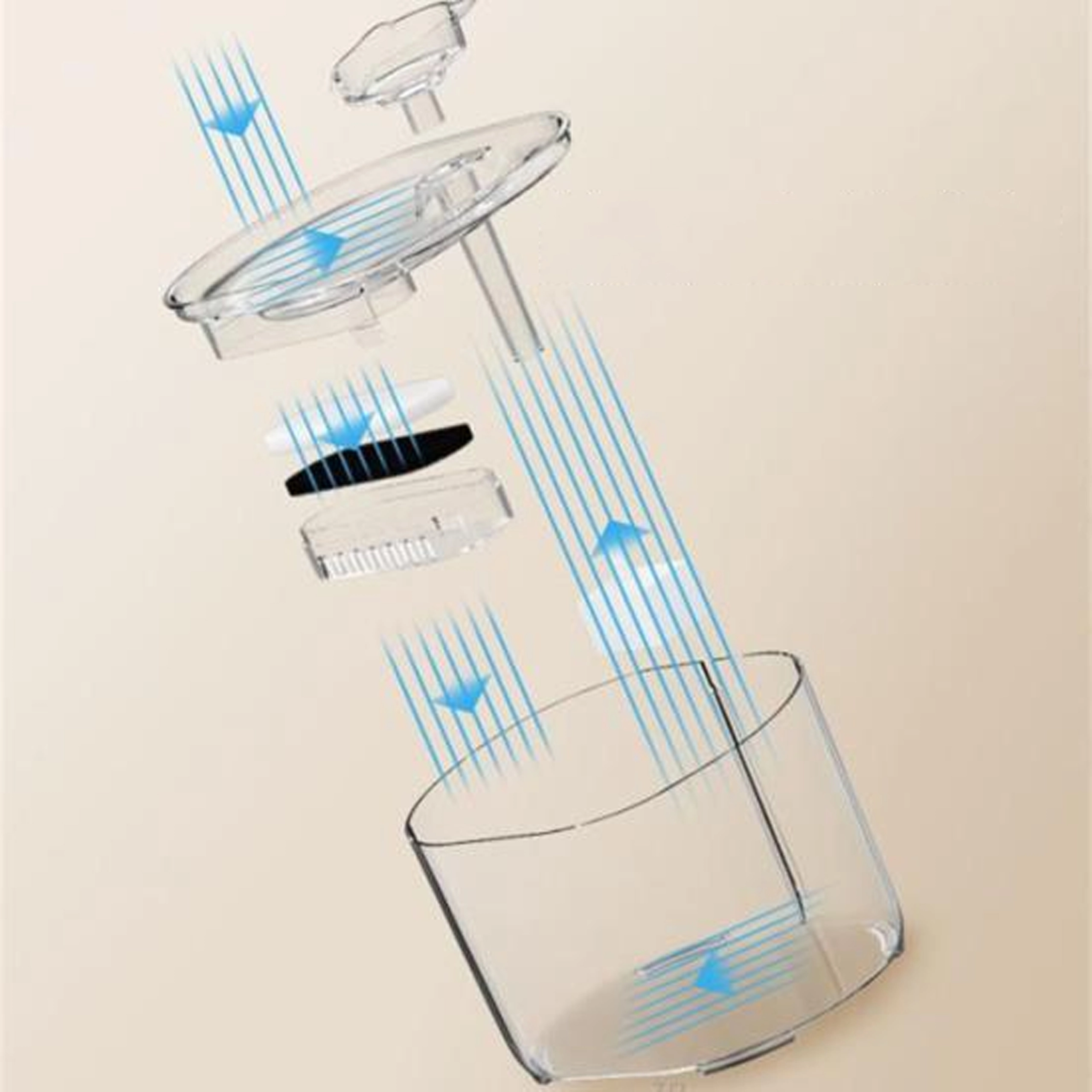 Višerazinski filtarski sustav zadržava dlake i nečistoće te pomaže smanjiti mirise i neželjene okuse. Neprekinuti mlaz ili nježna vodena površina (prema postavci mlaznice) motivira životinje na češće pijenje, što pridonosi zdravlju mokraćnih puteva i općoj vitalnosti.