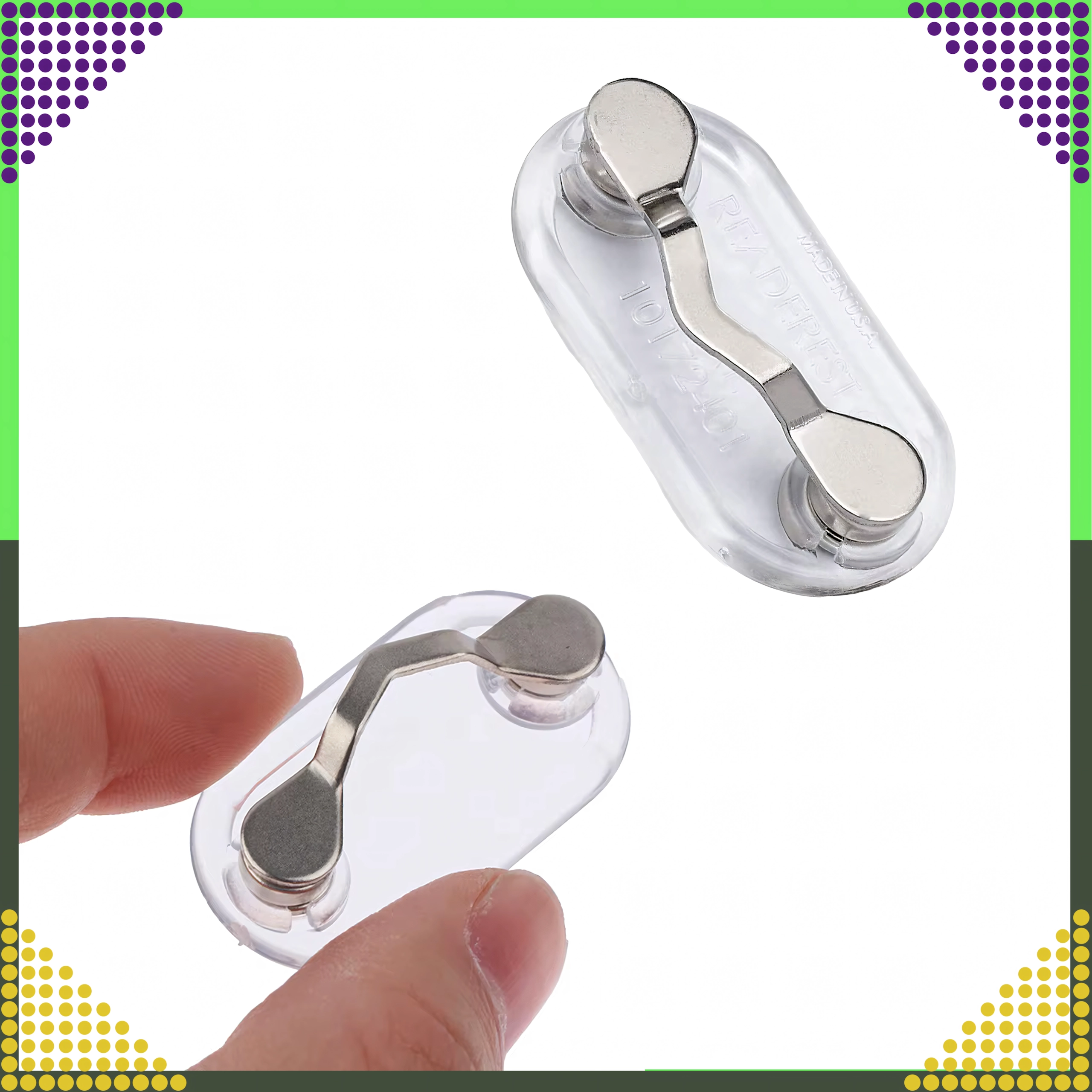 Dvostruki magnet čvrsto spaja kopču kroz tkaninu i drži dodatke na mjestu i pri kretanju – bez igala i bez oštećenja tekstila.