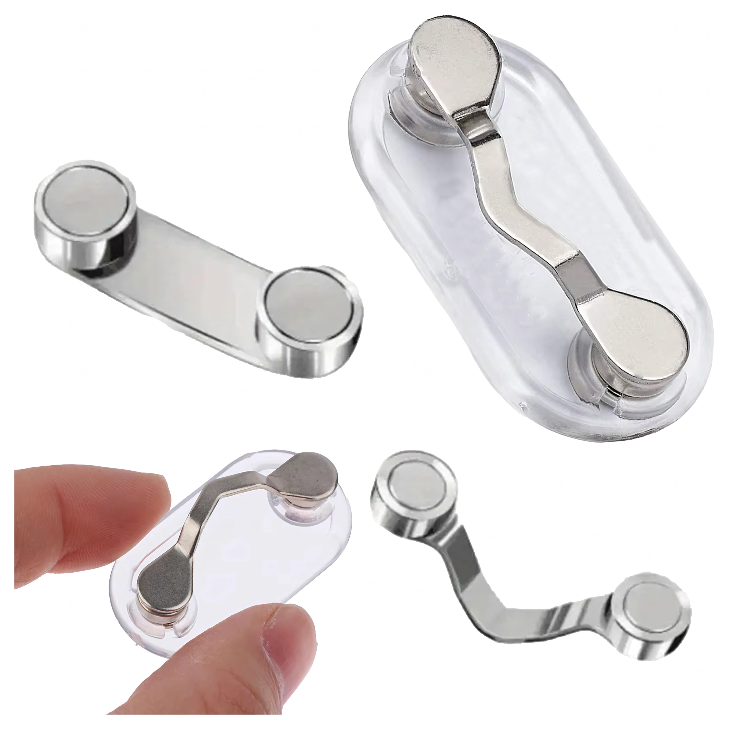 Praktični magnetni držač elegantno je rješenje kako imati naočale, slušalice ili identifikator uvijek pri ruci. Dvije snažne magnetne pločice spajaju se kroz tkaninu i stvaraju stabilan prihvat bez oštećenja odjeće. Metalna izvedba s prozirnom podlogom djeluje nenametljivo i pristaje uredu, putovanjima i sportu.