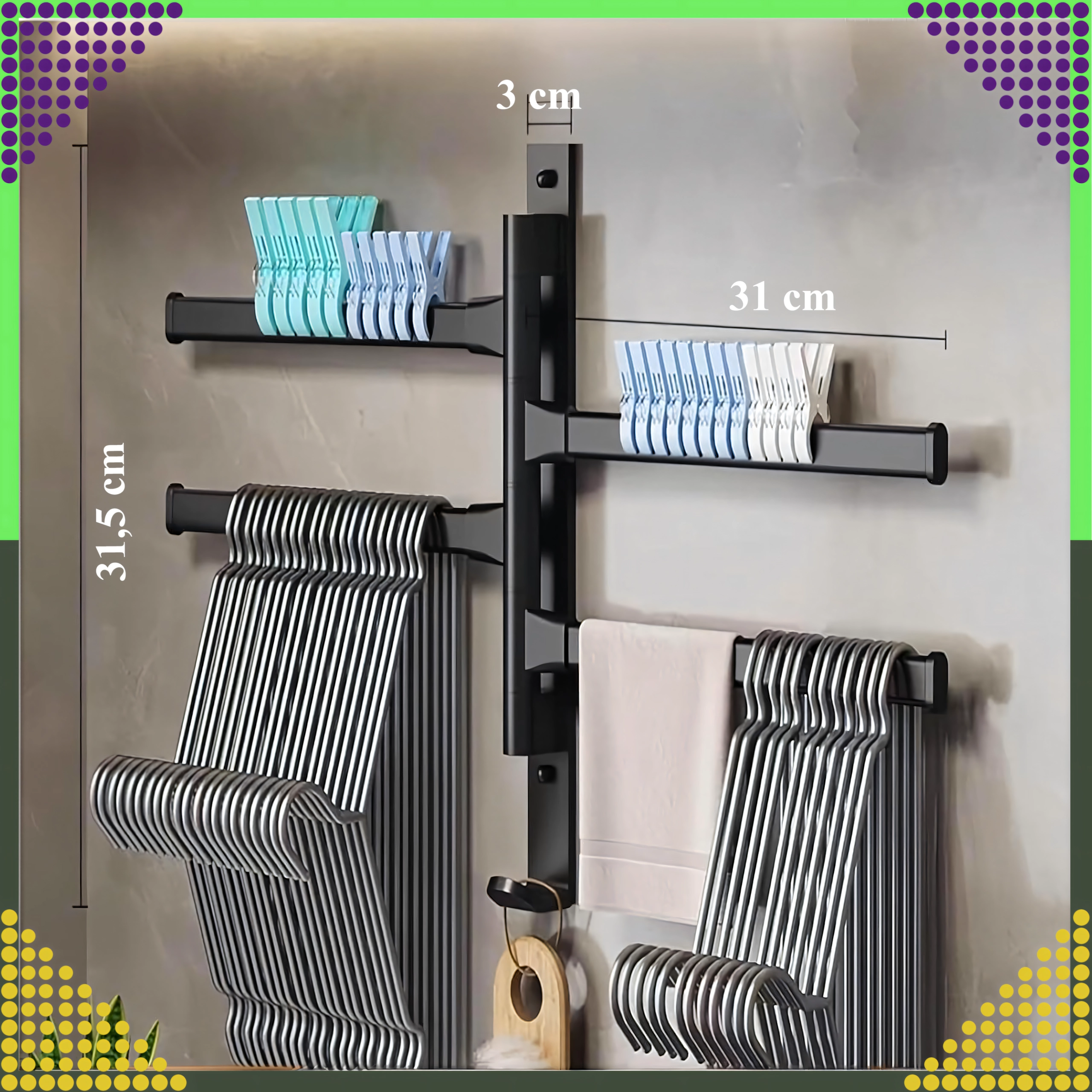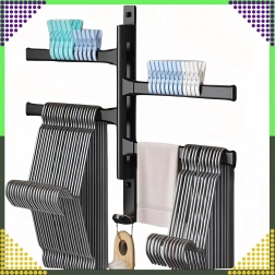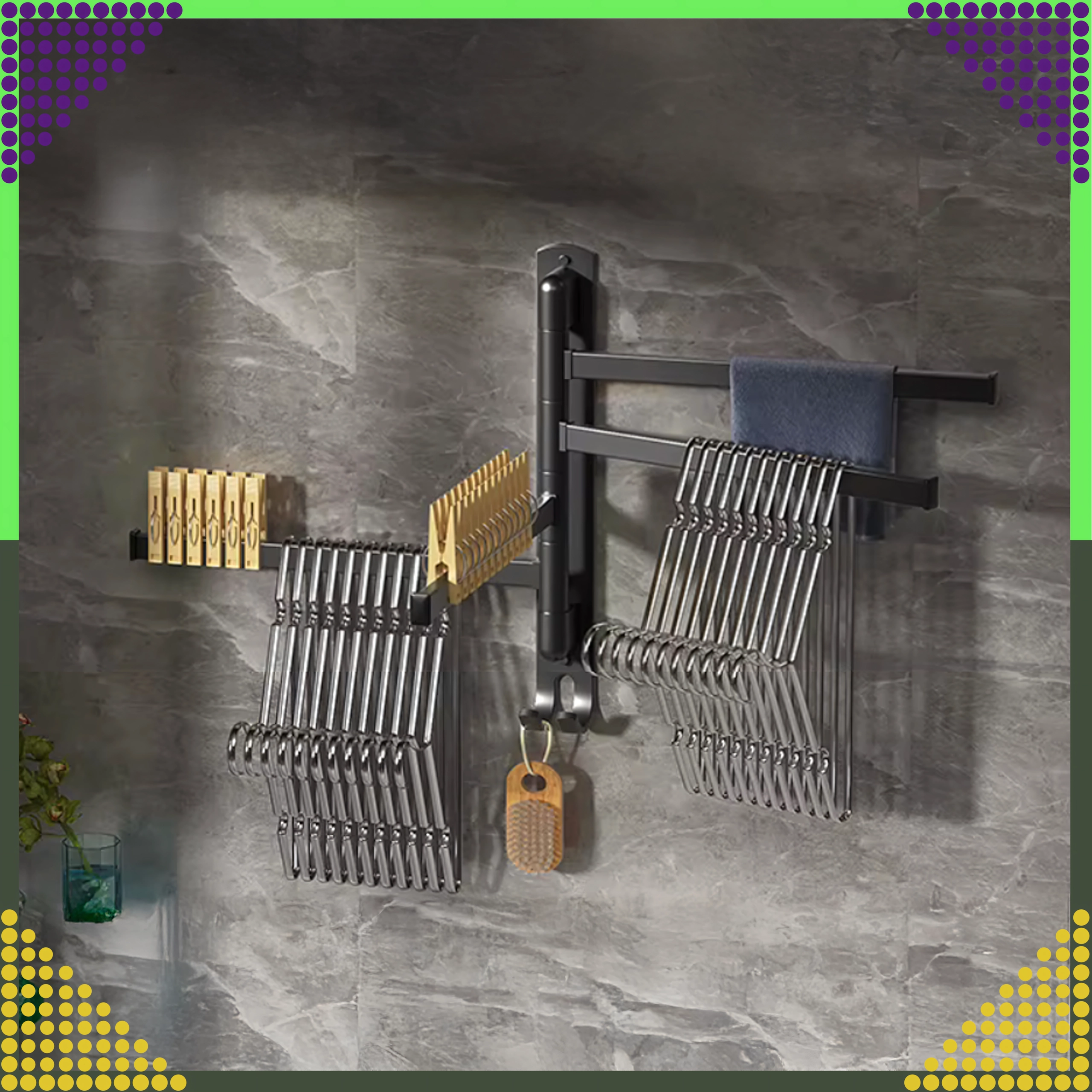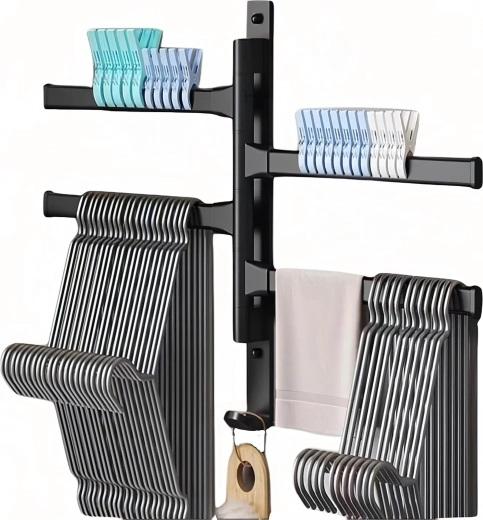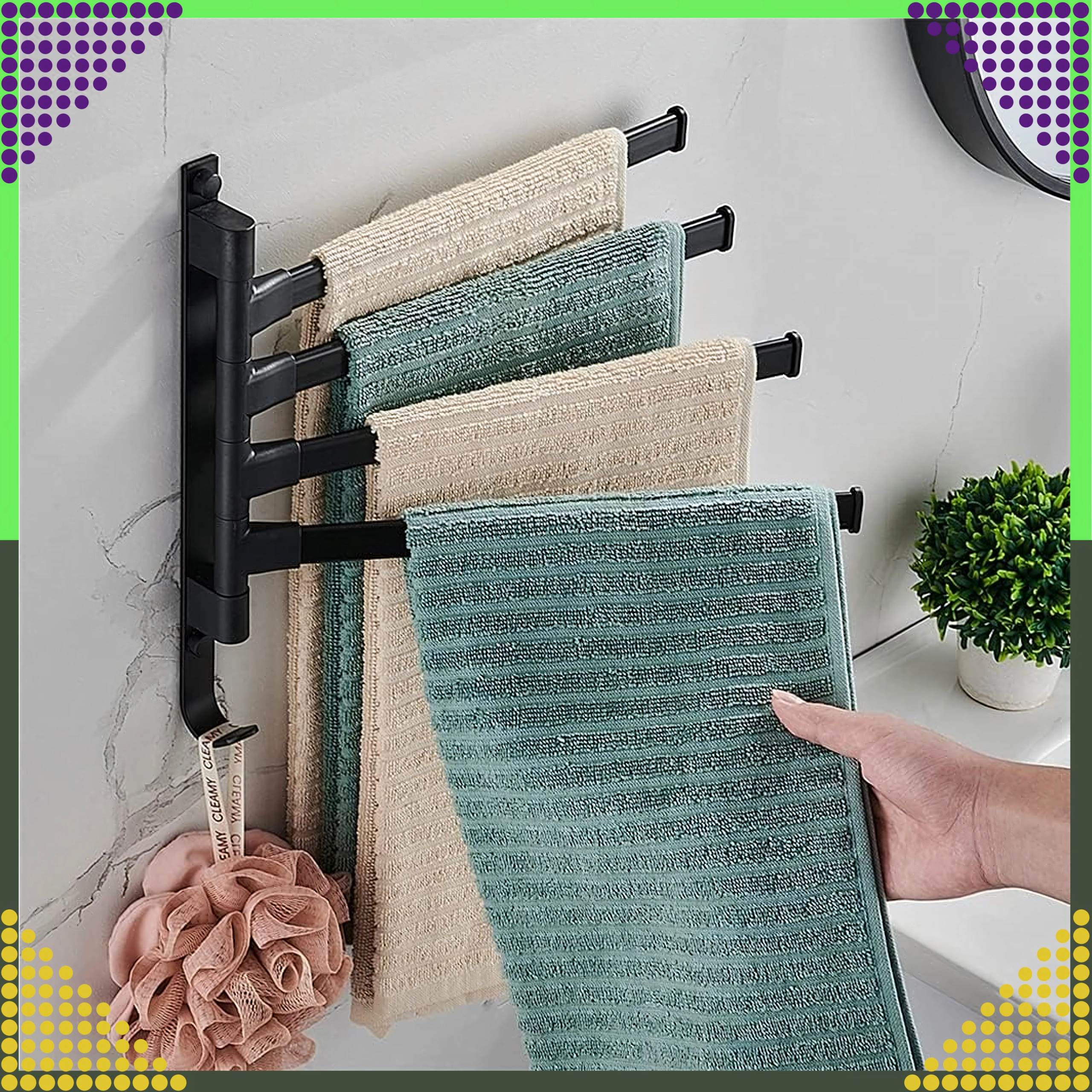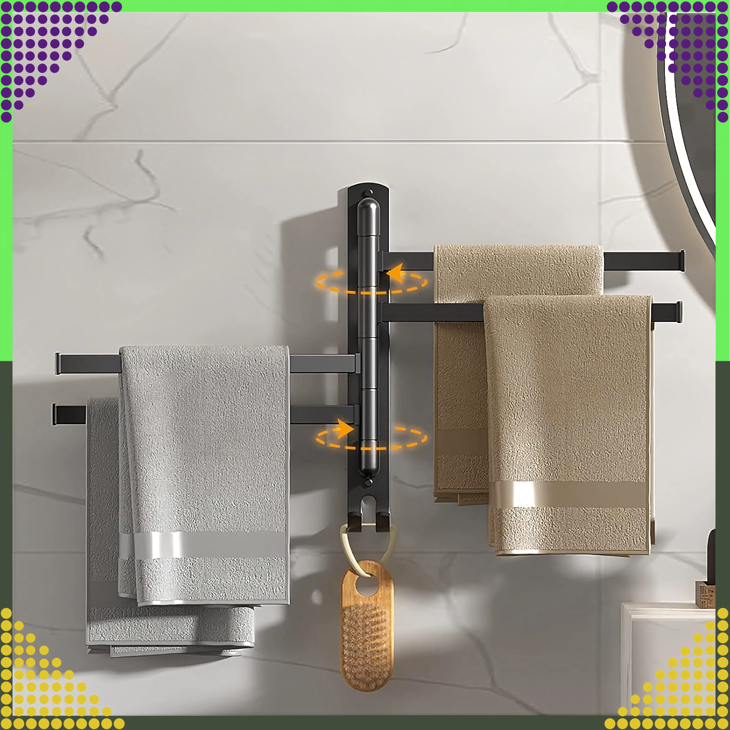 Ovaj univerzalni rotacijski vješalica idealan je za kupaonicu, kuhinju i garderobu. Četiri neovisno preklopne ruke omogućuju praktično vješanje više ručnika ili krpa odjednom, bolju cirkulaciju zraka i brže sušenje. Donja kuka dodatno poslužit će za četku, spužvu ili dodatke.
