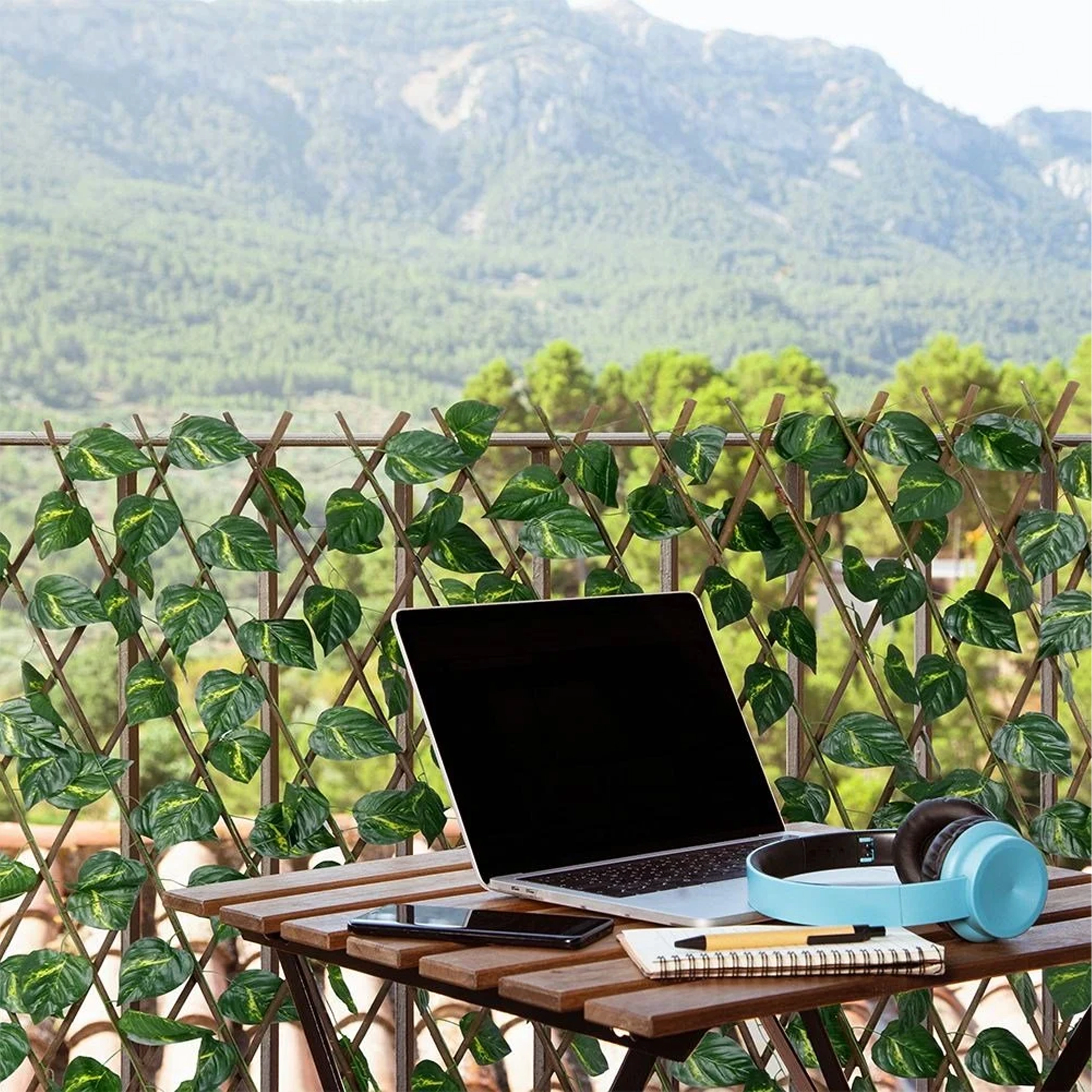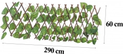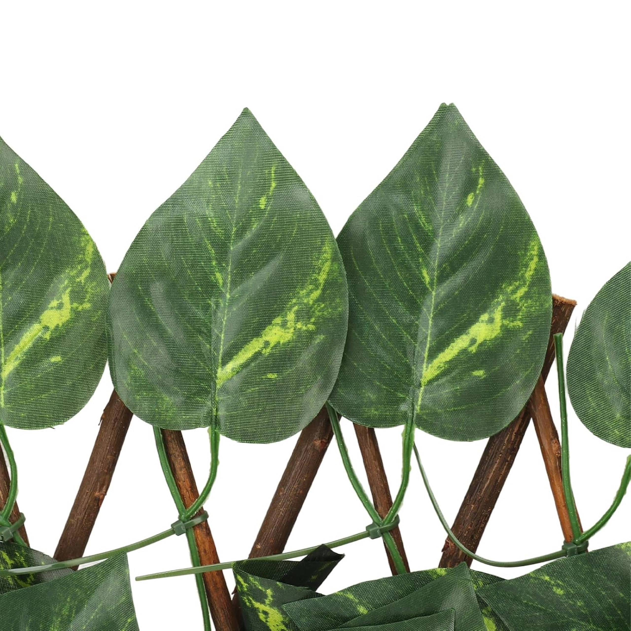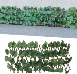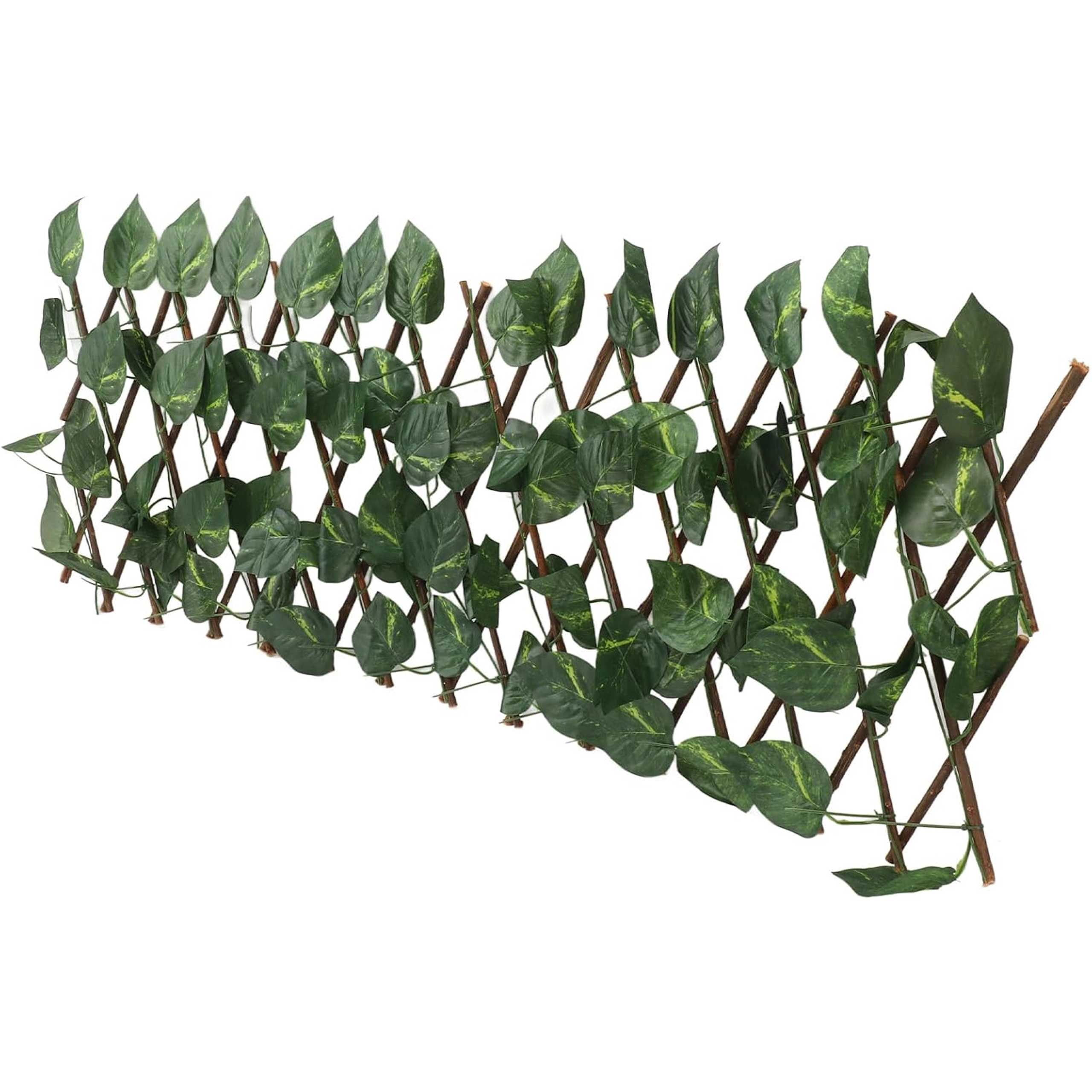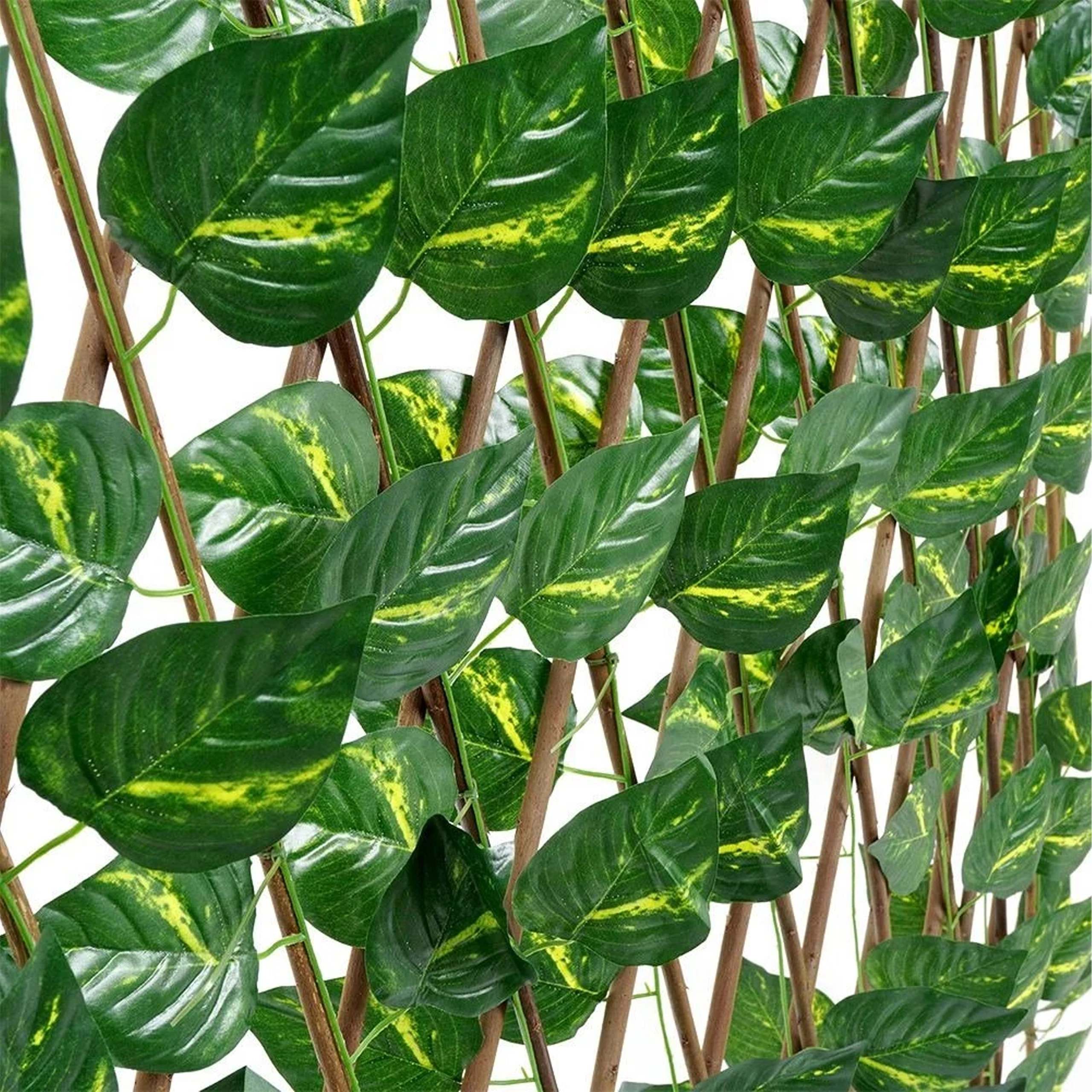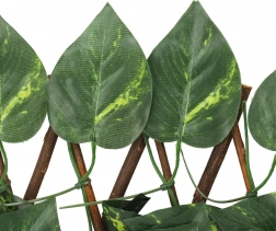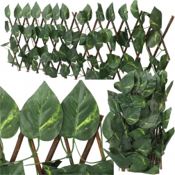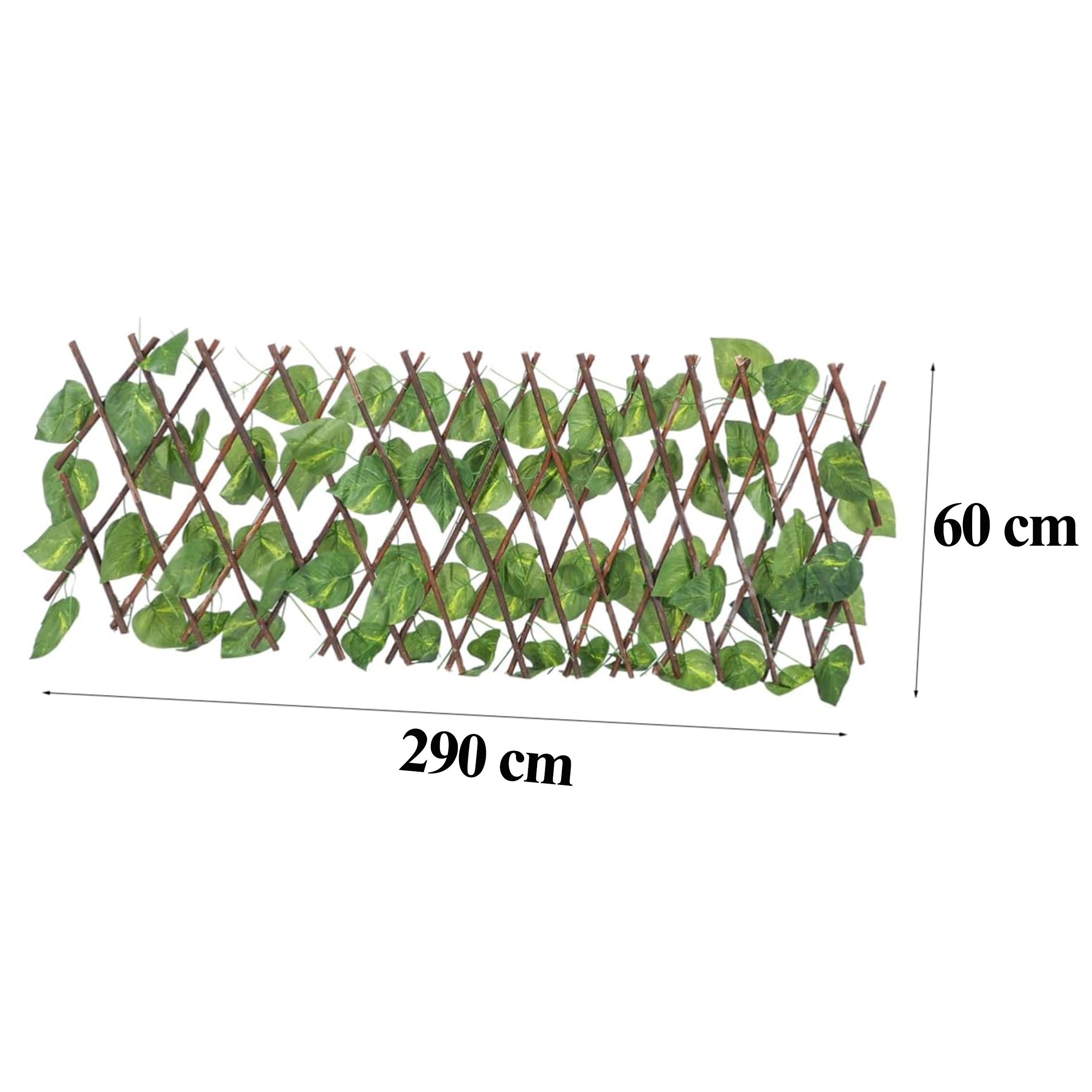 Ova dekorativna rešetka s gustim umjetnim lišćem na drvenoj križnoj konstrukciji služi kao elegantna zaslona za balkone, terase, pergole i ograde. Realistično izgledajuće, zimzeleno lišće pruža ugodnu pokrivenost, a istovremeno propušta zrak – idealno za privatnost bez održavanja.