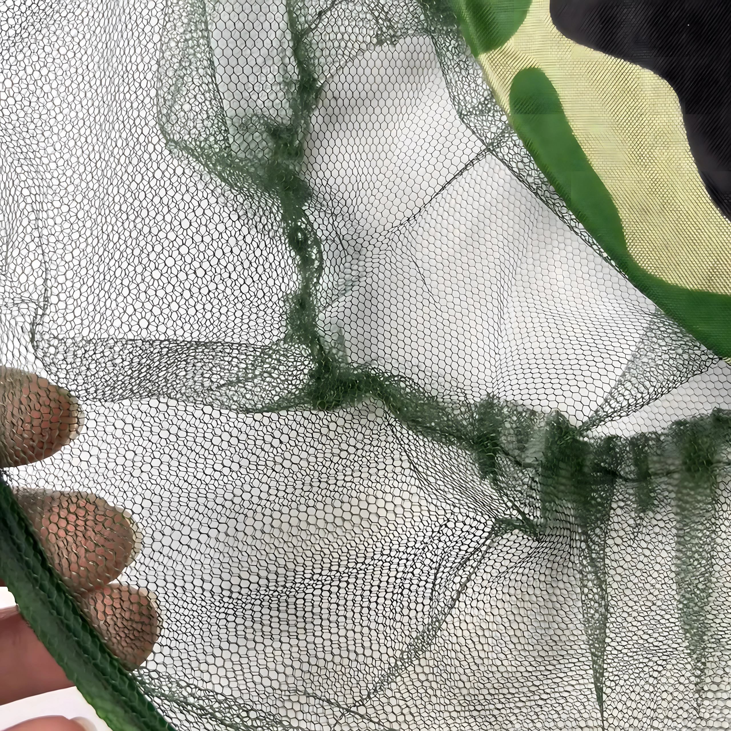 Široki obod drži mrežu podalje od lica, a kamuflažni uzorak prikladan je za ribiče, lovce i ljubitelje aktivnosti na otvorenom.