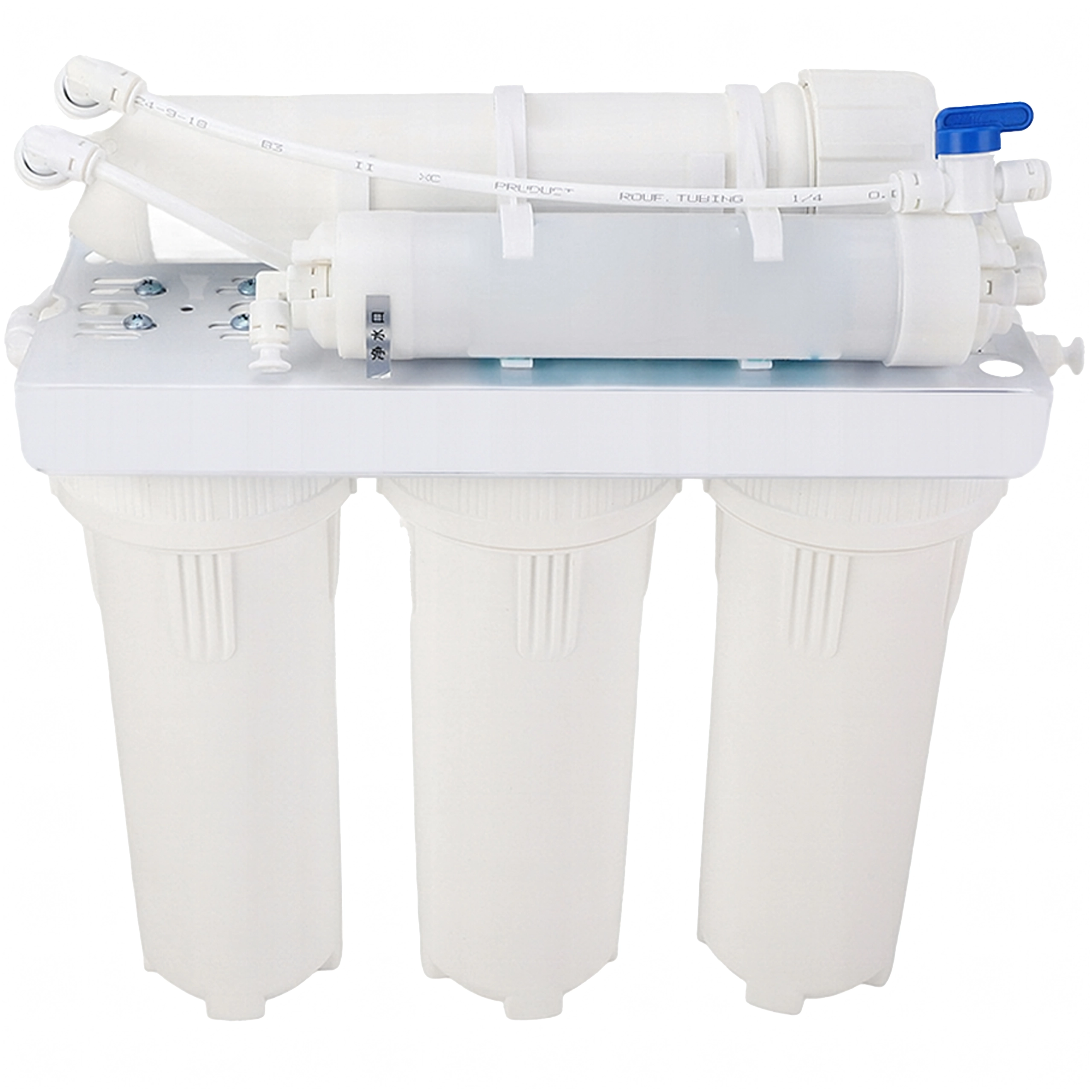 - Sedimentni predfilter, ugljični predfilter, RO membrana, ugljični završni filter, mineralizator