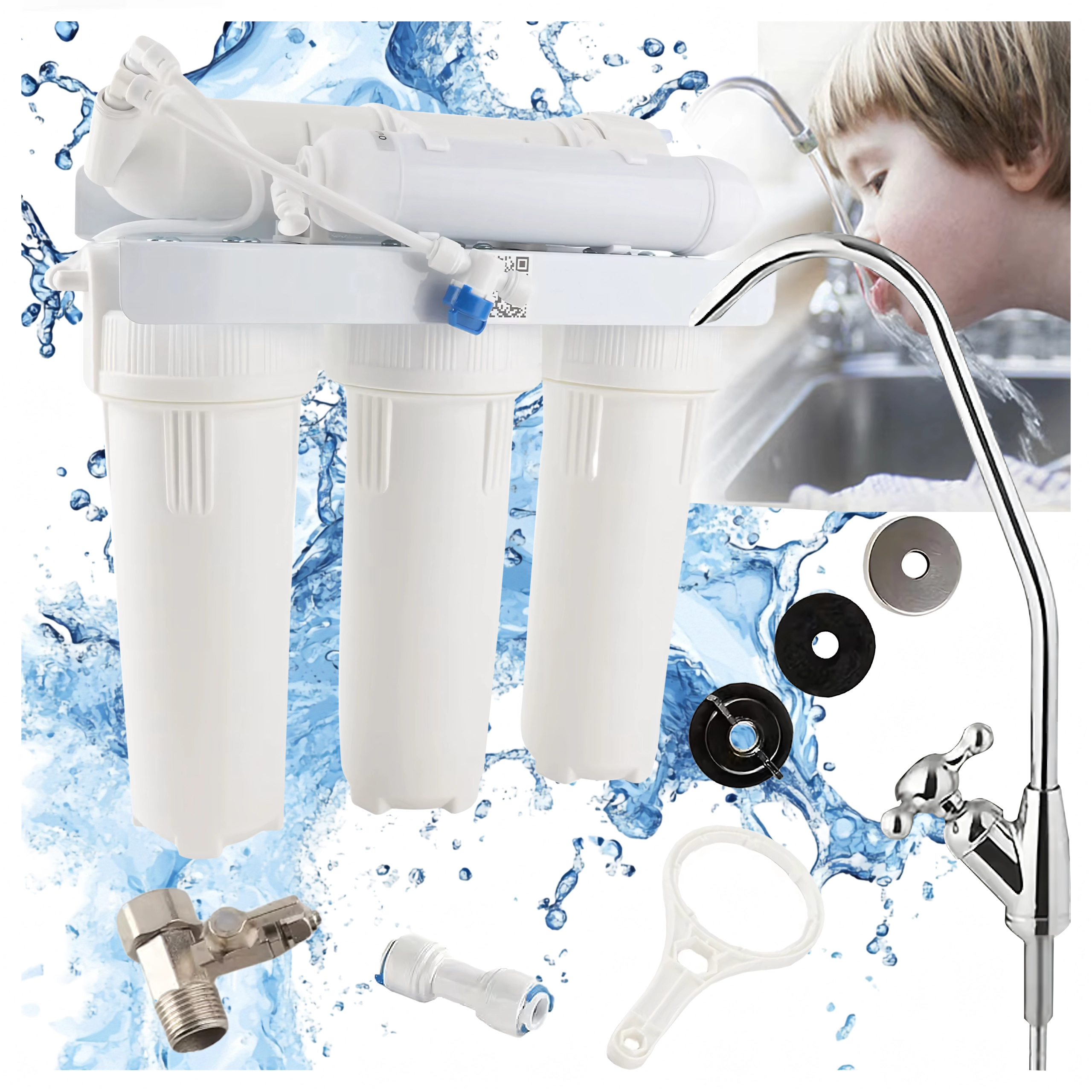 Moderni sustav za pročišćavanje pitke vode s reverznom osmozom koji uklanja do 99 % nečistoća, uključujući klor, teške metale, bakterije, mikroplastiku i pesticide. Radi bez električne energije – dovoljan je tlak vode. Zahvaljujući 5-stupanjskoj filtraciji i mineralizatoru dobit ćete čistu, zdravu i ukusnu vodu izravno iz slavine, idealnu za piće, kuhanje i pripremu napitaka. Štedi novac, ekološka je i praktična – kraj flaširanoj vodi!