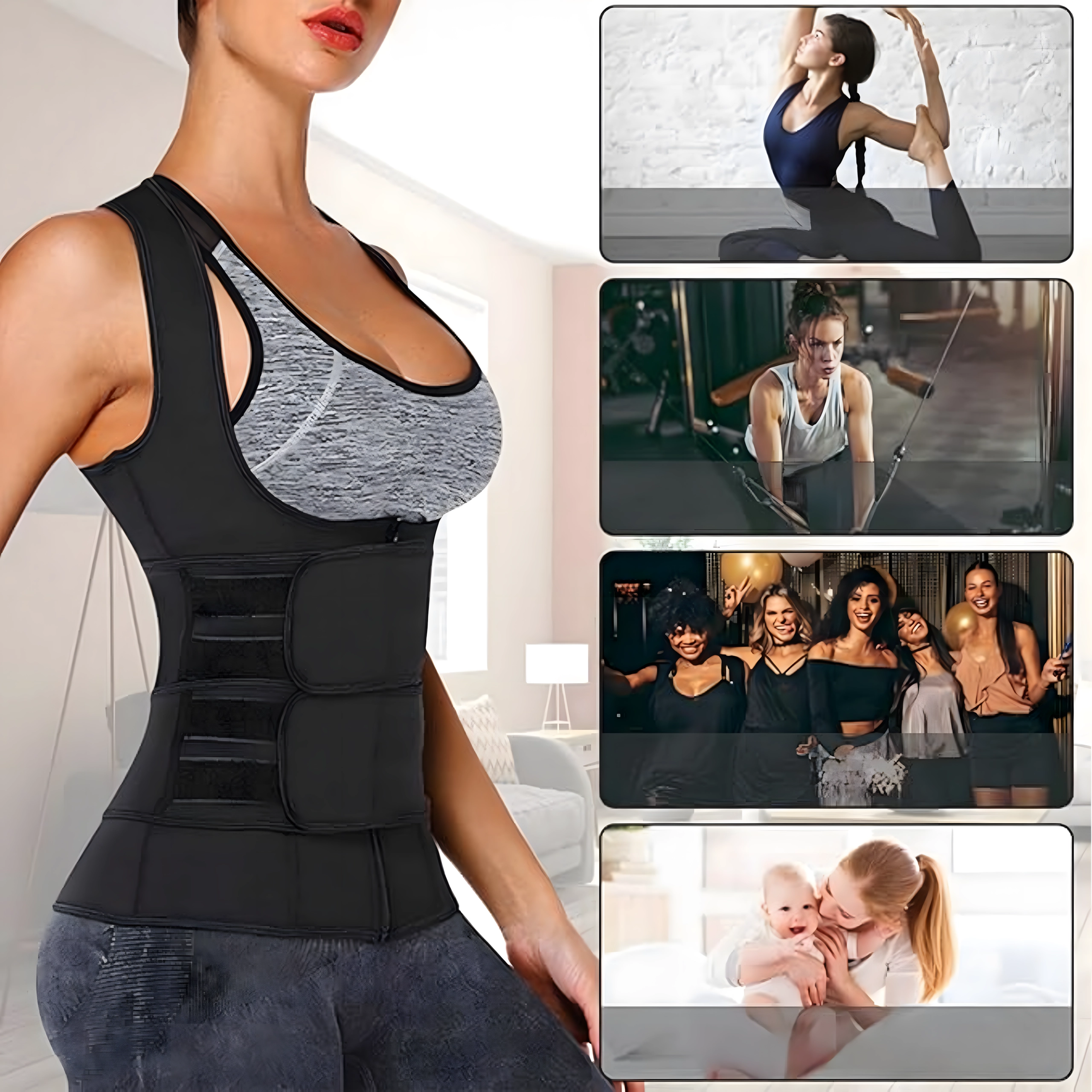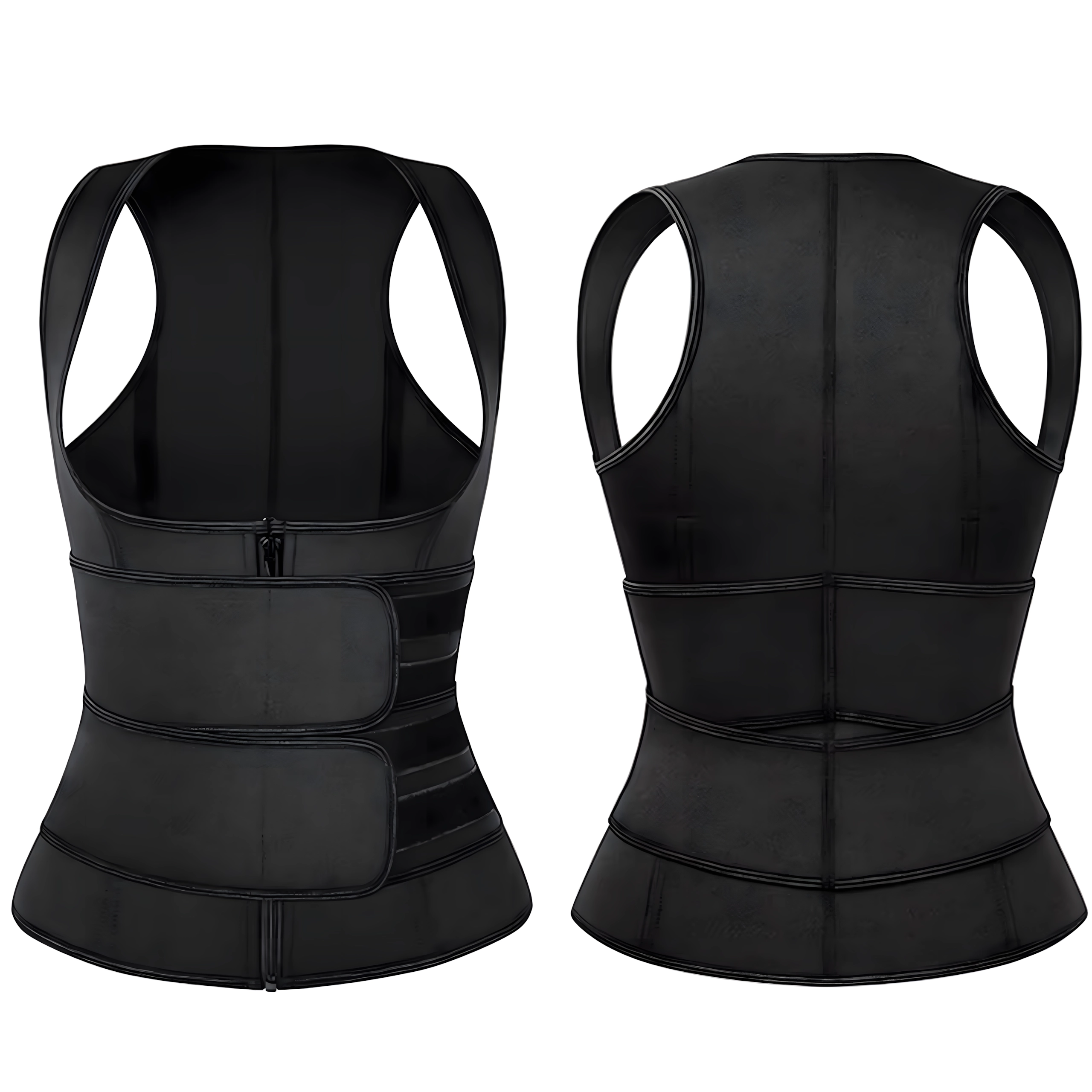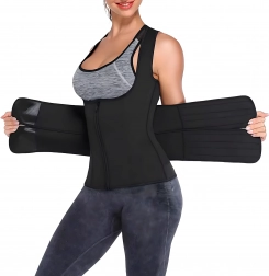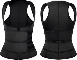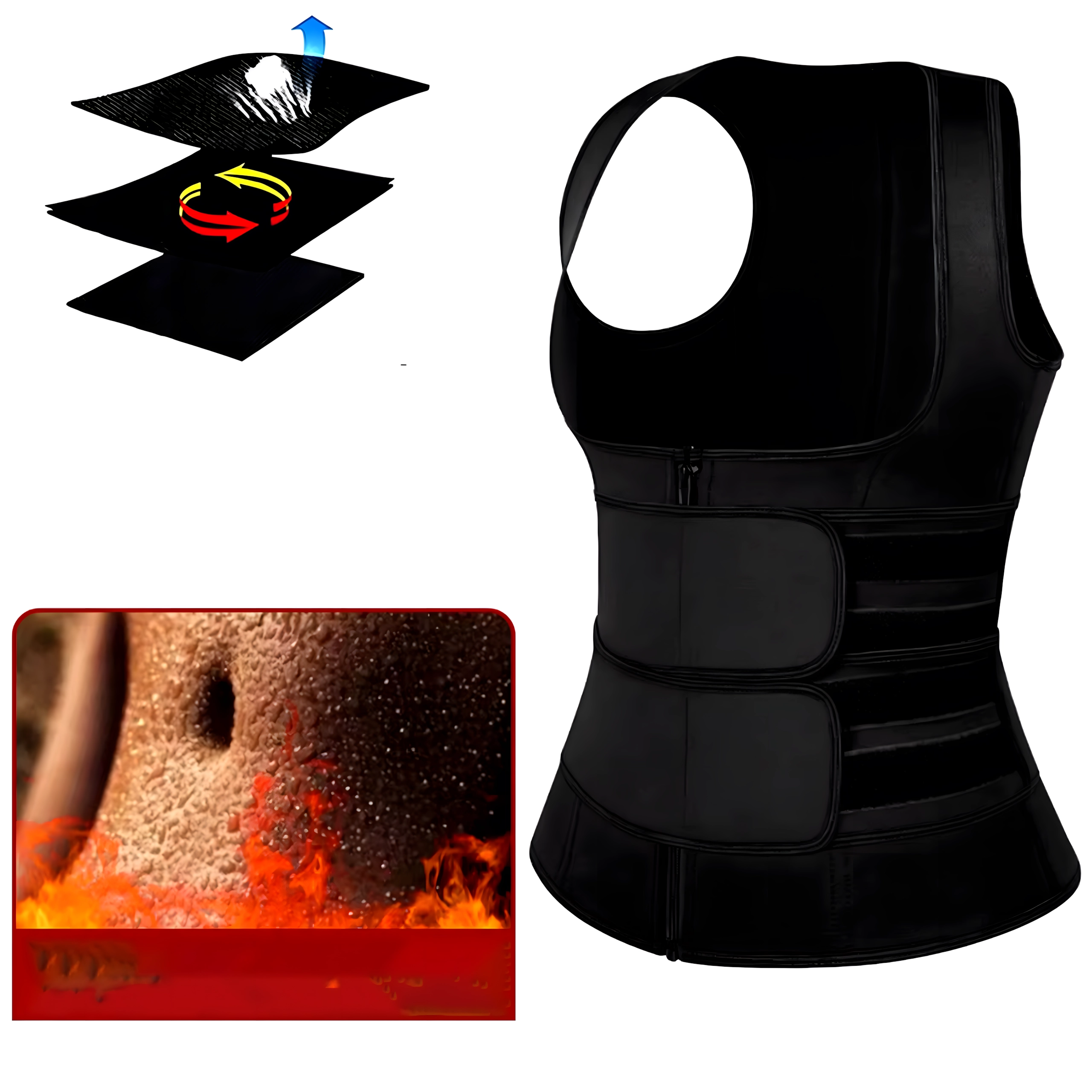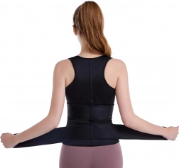 Ovaj ženski neopren prsluk dizajniran je za učinkovito oblikovanje linije i potporu tijekom treninga. Termoaktivni materijal povećava zagrijavanje tijela, čime potiče znojenje i doprinosi bržem sagorijevanju kalorija. Pripijeni kroj, prednji patentni zatvarač i dvostruki čičak u struku osiguravaju stabilnost i ugodnu kompresiju bez ograničenja pokreta.