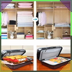 Komprimirajte glomazne poplune, jastuke i pulovere u plosnate pakete i oslobodite prostor u ormaru, pri selidbi ili na putovanjima.