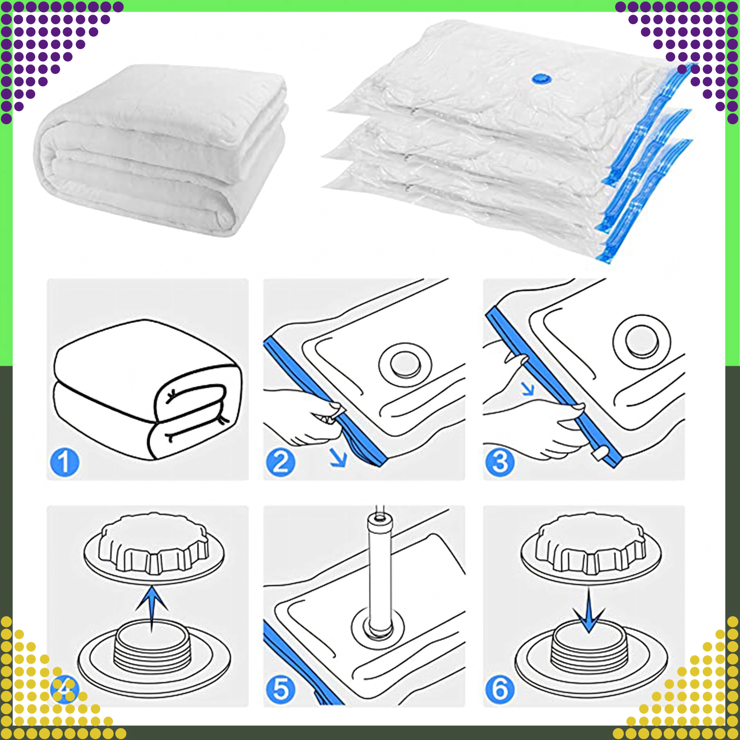 Zahvaljujući dvostrukom zipu s klizačem i povratnom ventilu uporaba je brza i pouzdana – dovoljno je zatvoriti, ispustiti zrak usisavačem ili pumpom i spremiti. Vrećica je od izdržljivog materijala koji omogućuje višekratnu uporabu bez gubitka nepropusnosti.