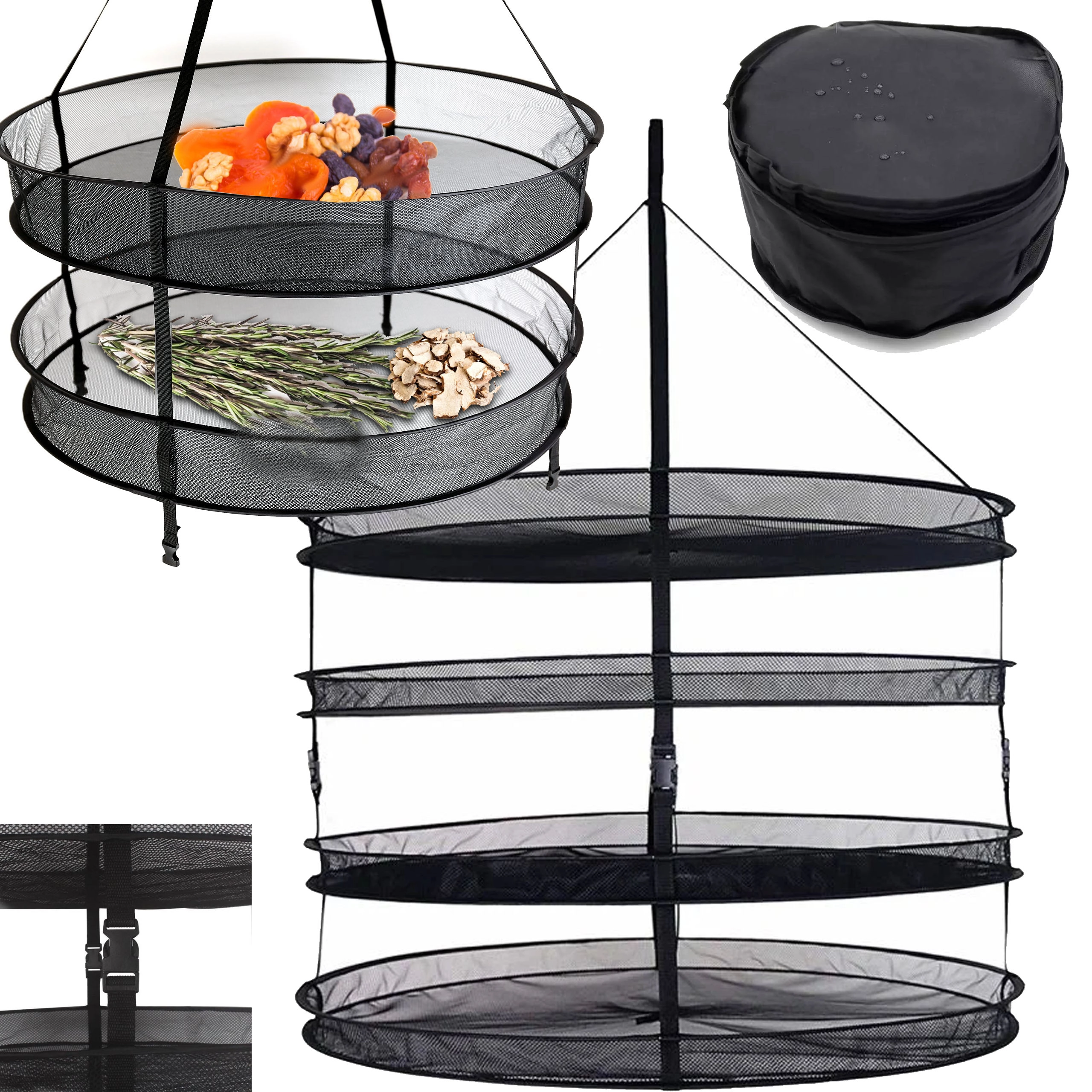 Ova viseća sušilica od fine mrežice nudi četiri prostrane police za ekonomično sušenje u jednoj vertikalnoj “kuli”. Prozračan materijal podržava prirodnu cirkulaciju zraka, što ubrzava sušenje i pomaže očuvati okus i aromu sušenih namirnica. Zahvaljujući gornjoj visećoj omči lako je postavite na kuku, u ormar ili ispod pergole.