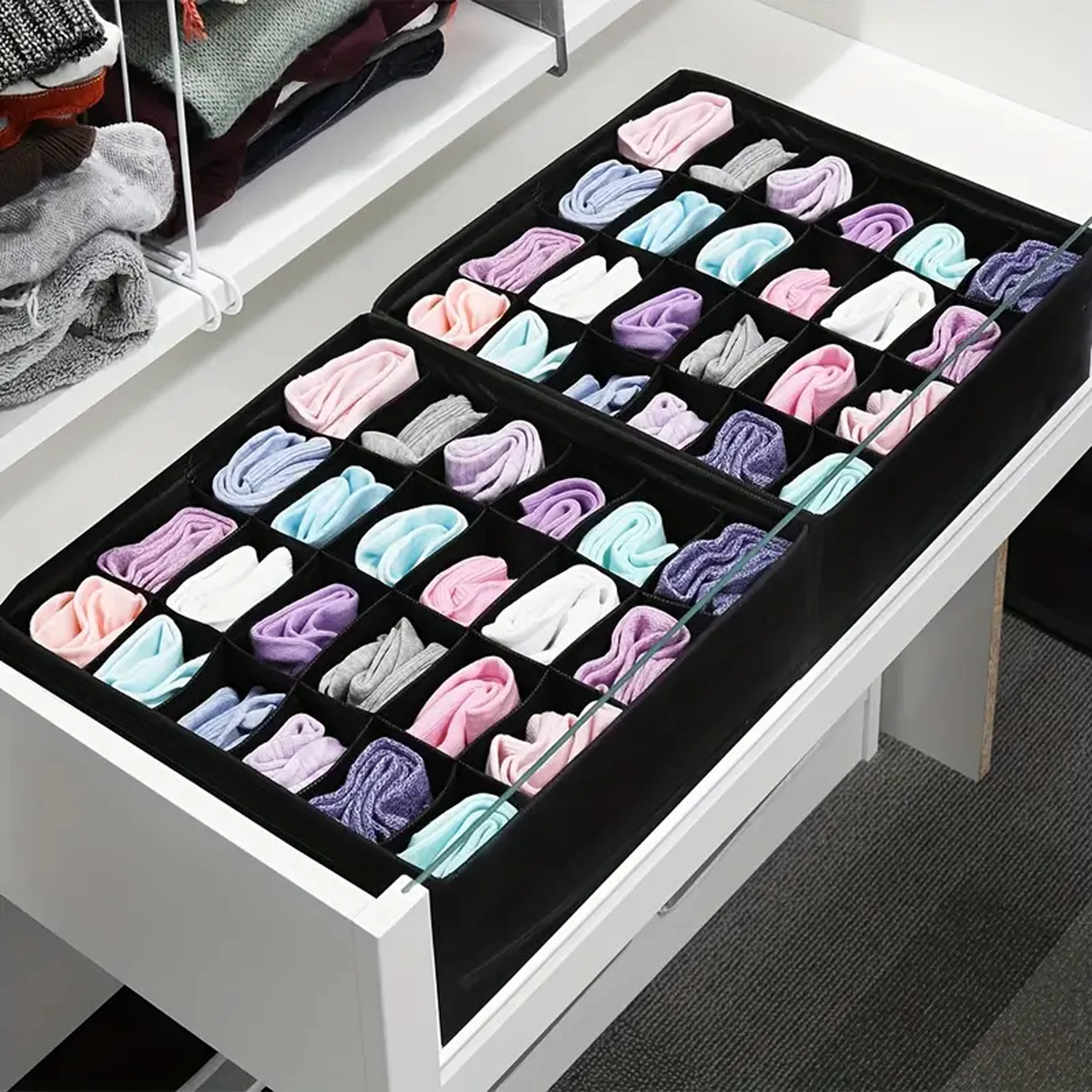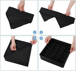 Dimenzije 32 × 32 × 10 cm odgovaraju većini uobičajenih ladica i otvorenih polica. Organizator je odličan izbor za čarape, gaćice, grudnjake, najlonke, kravate i dodatke. Montaža je brza i jednostavna – gotovi ste za nekoliko sekundi.