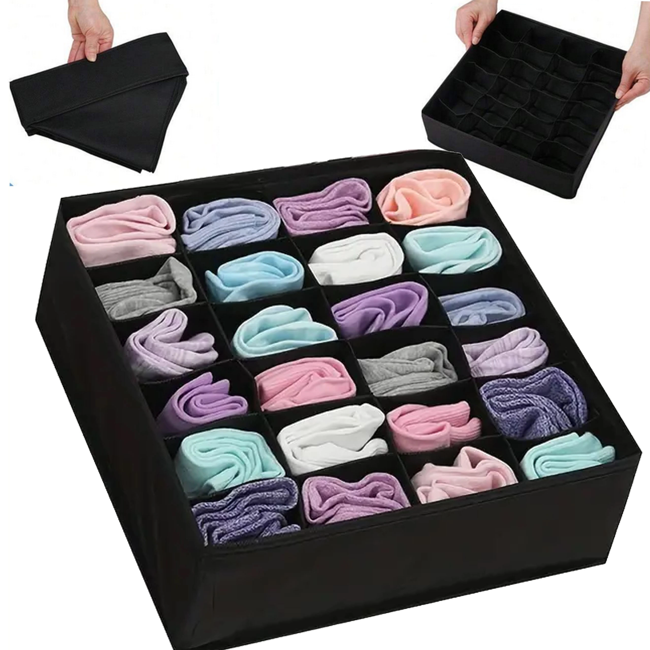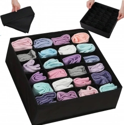 Praktičan organizator za ladicu pomaže ukrotiti nered u komodi i ormaru. Zahvaljujući 24 zasebne ćelije lako ćete razvrstati rublje i svaki će komad imati svoje mjesto. Čvrsto ojačani zidovi drže oblik i olakšavaju rukovanje, dok prozračna netkana tkanina osigurava cirkulaciju zraka.