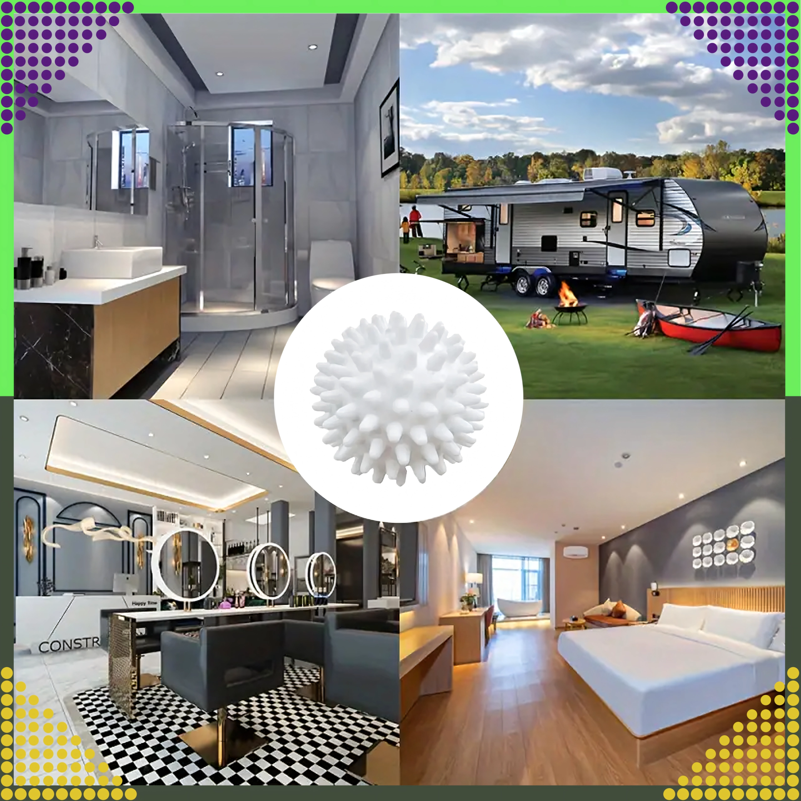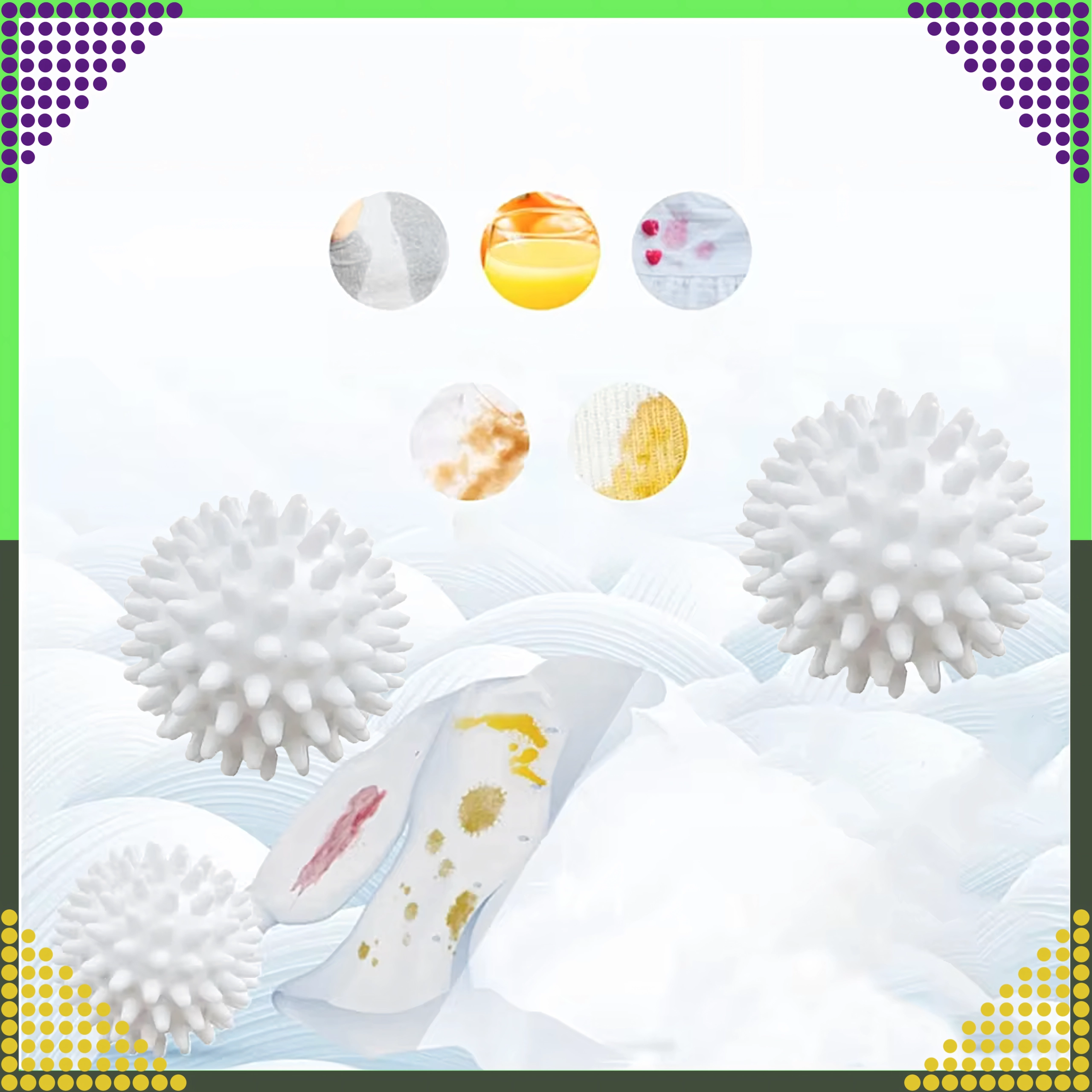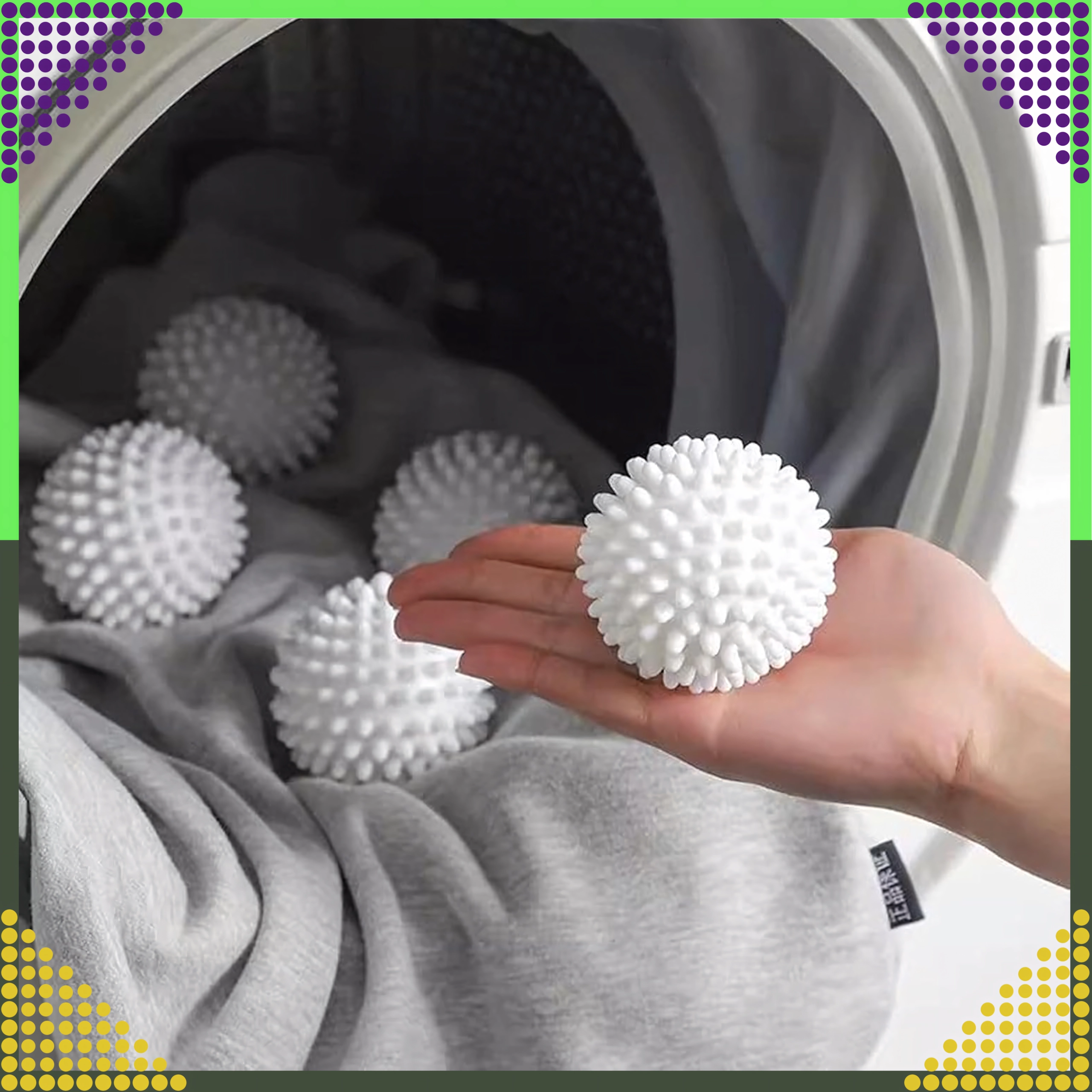 Kuglice sa svojim nježnim ispupčenjima pomažu oslobađanje dlačica, kose i mucica s tekstila, a ujedno smanjuju gužvanje. Višekratno su upotrebljive, lagane i izdržljive – izvrstan izbor za kućanstva koja žele uštedjeti vrijeme, energiju i novac.