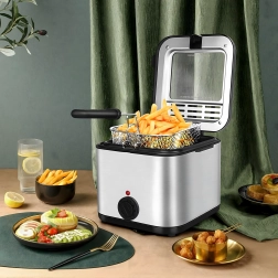 Ova tradicionalna uljna friteza idealan je izbor za ljubitelje kućnog prženja. Zapremnina 2,5 l savršena je za obiteljske porcije, dok regulacija temperature omogućuje prilagodbu prženja različitim vrstama namirnica – od krumpirića i ribe do odrezaka ili nuggetsa.