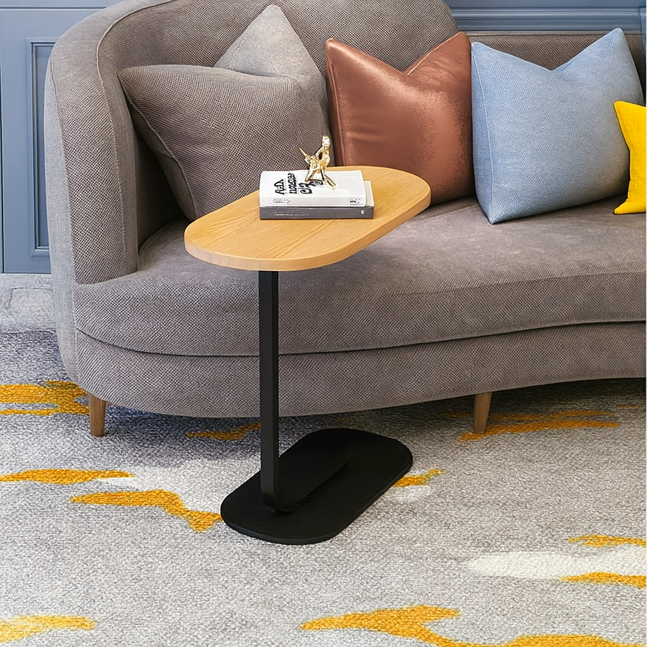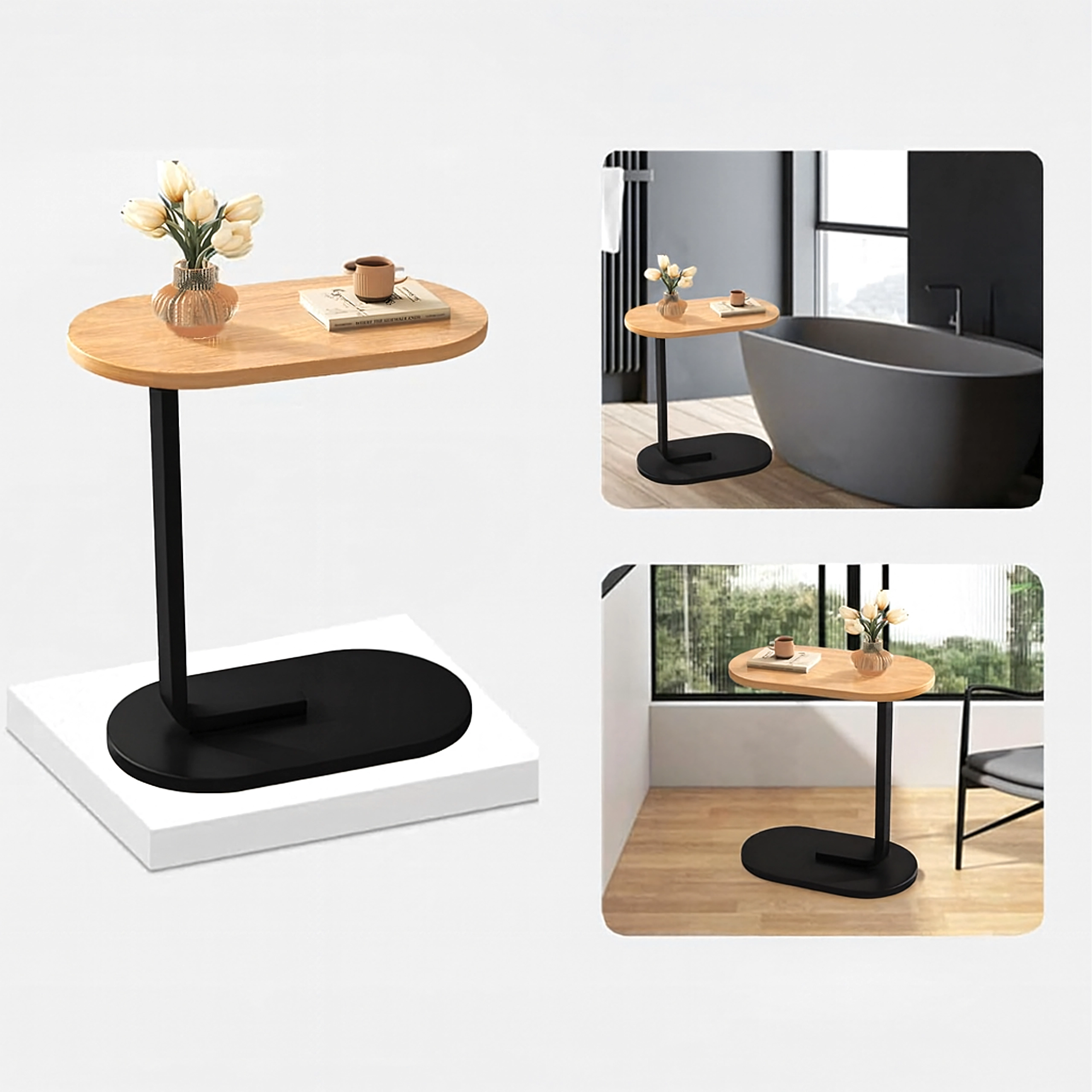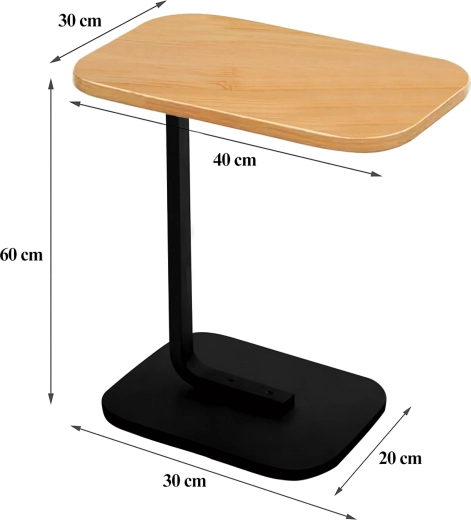 Elegantni C-stolić kombinira svijetlu ploču s dekorom drva s izdržljivom crnom metalnom konstrukcijom. Idealan je kao pomoćni stolić uz sofu, noćni ormarić uz krevet ili mobilno podnožje za rad s prijenosnikom. Zahvaljujući vitkom podnožju lako ga gurnete pod namještaj i uštedite prostor.