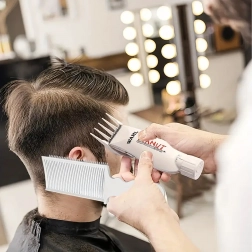 Fini i srednji zupci češlja pouzdano vode kosu pri radu s mašinicom i škarama, čime postižete ujednačeno šišanje i glatke prijelaze.