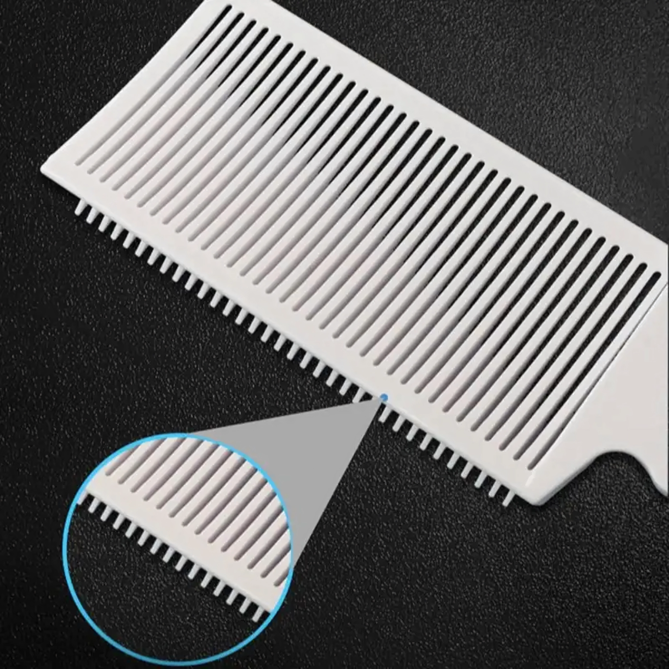 Tražite pouzdan češalj za precizna šišanja i savršene prijelaze? Ovaj profesionalni bijeli frizerski češalj s ergonomskom drškom nudi izvrsnu kontrolu pri radu sa škarama i mašinicom. Fini i srednji zupci pomažu precizno sekcionirati i voditi kosu, pa postižete čiste linije i glatke fade prijelaze.