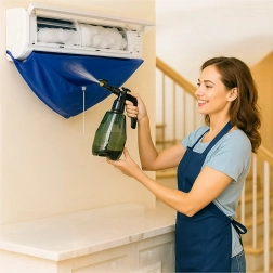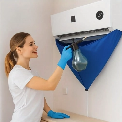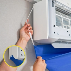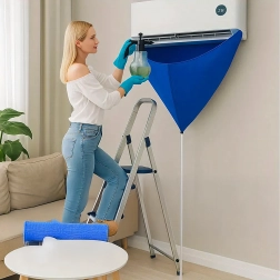 Olakšajte održavanje zidnih klima-uređaja s vodootpornom zaštitnom vrećom koja pouzdano hvata prljavu vodu, sredstva za čišćenje i nečistoće. Integrirano odvodno crijevo od 2 m sigurno odvodi tekućinu u kantu ili odvod, a elastični stezač pomaže zabrtviti prostor oko jedinice za čisto i brzo čišćenje.